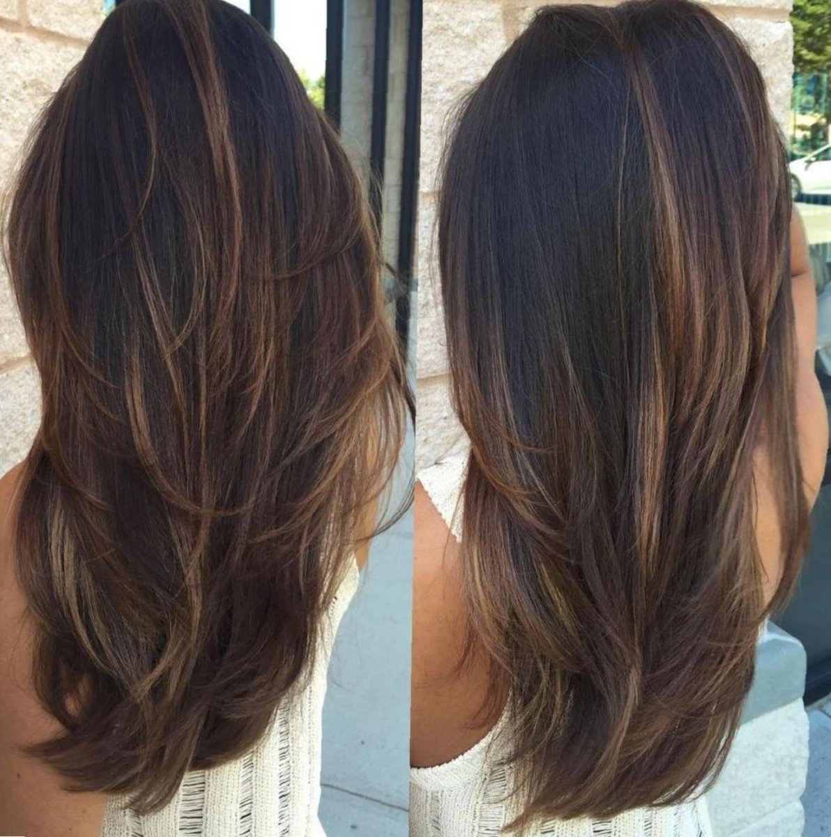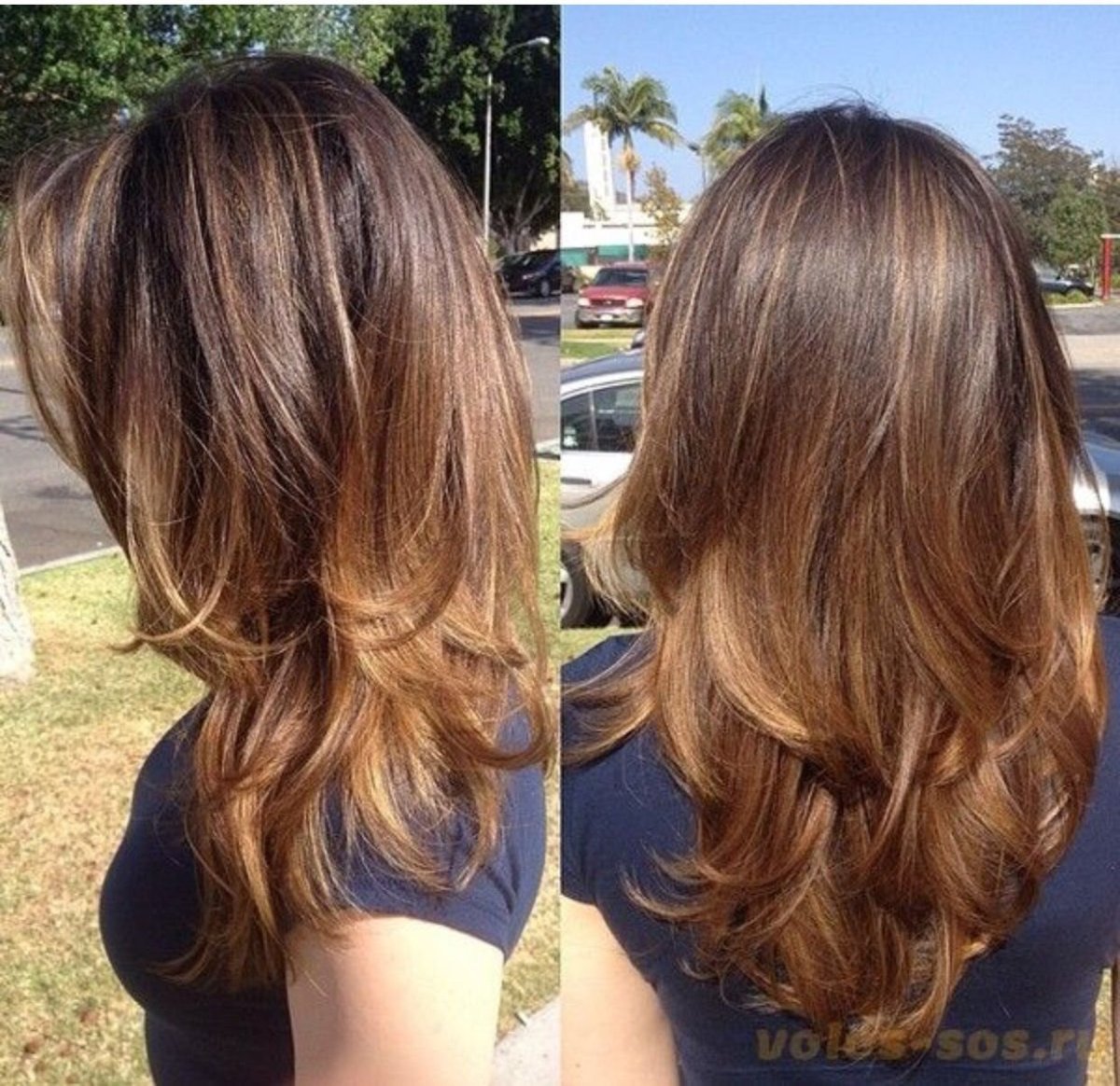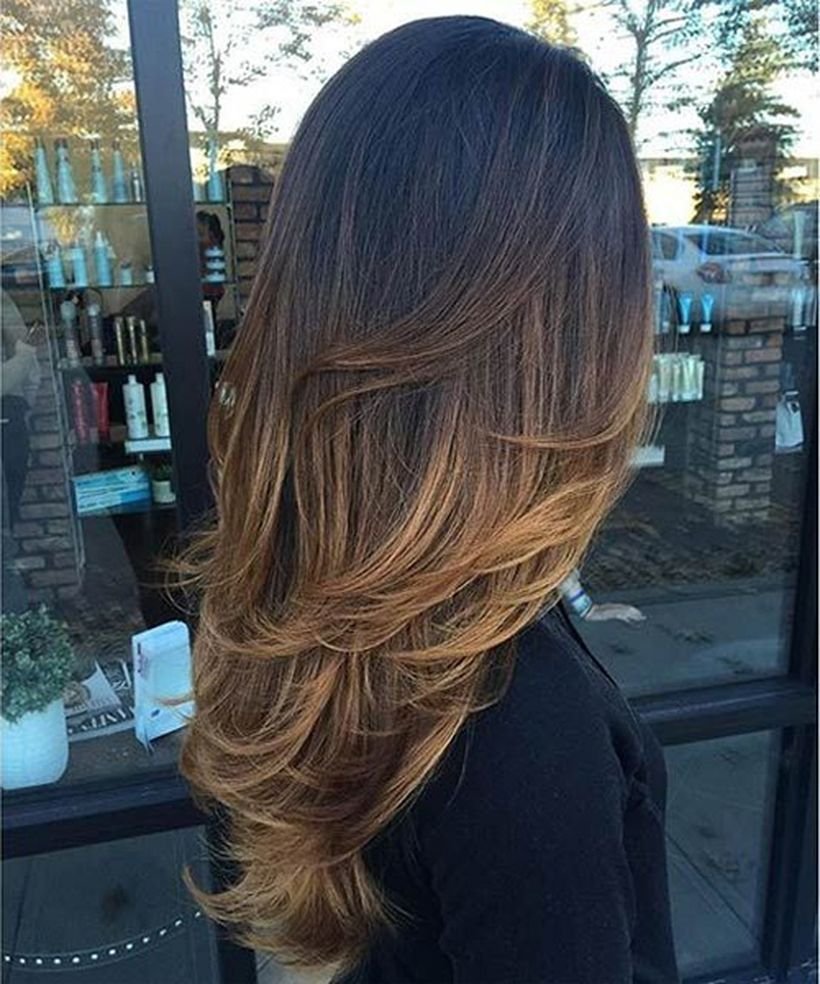 Балаяж на темные волосы Каскад прямой средней