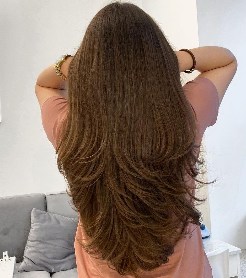 Каскад на длинные волосы вид сзади