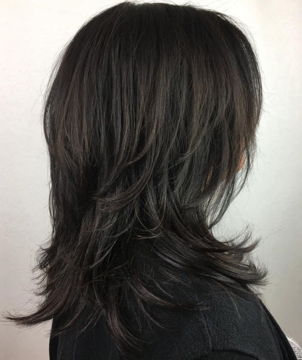 Каскад на длинных черных волосах