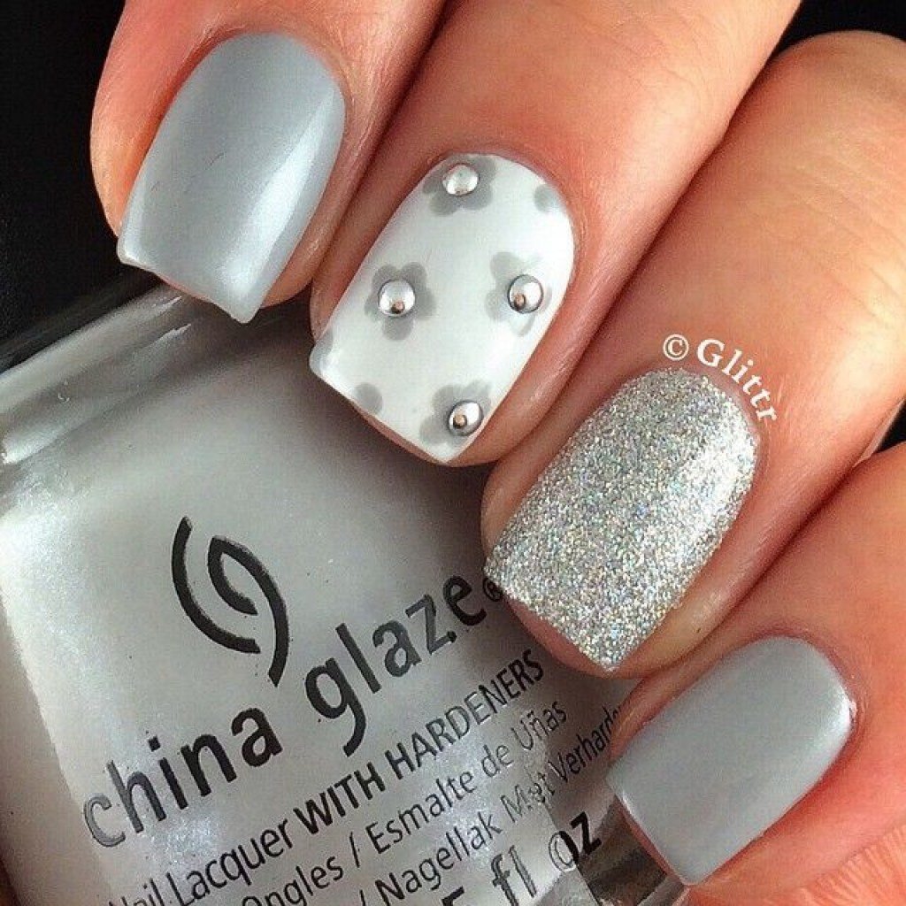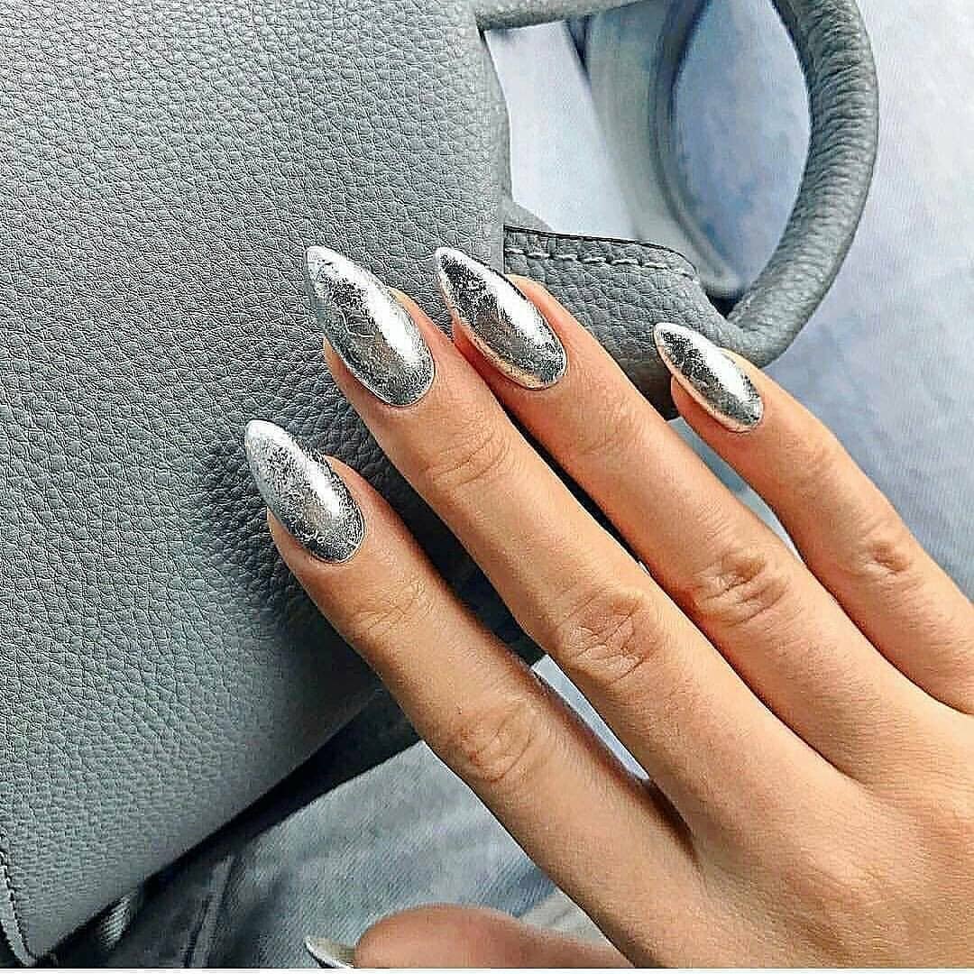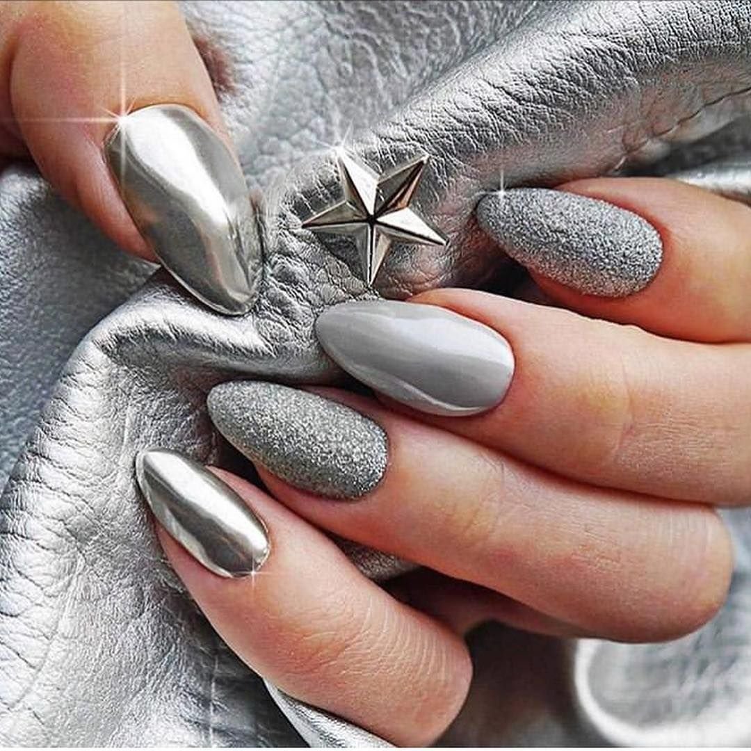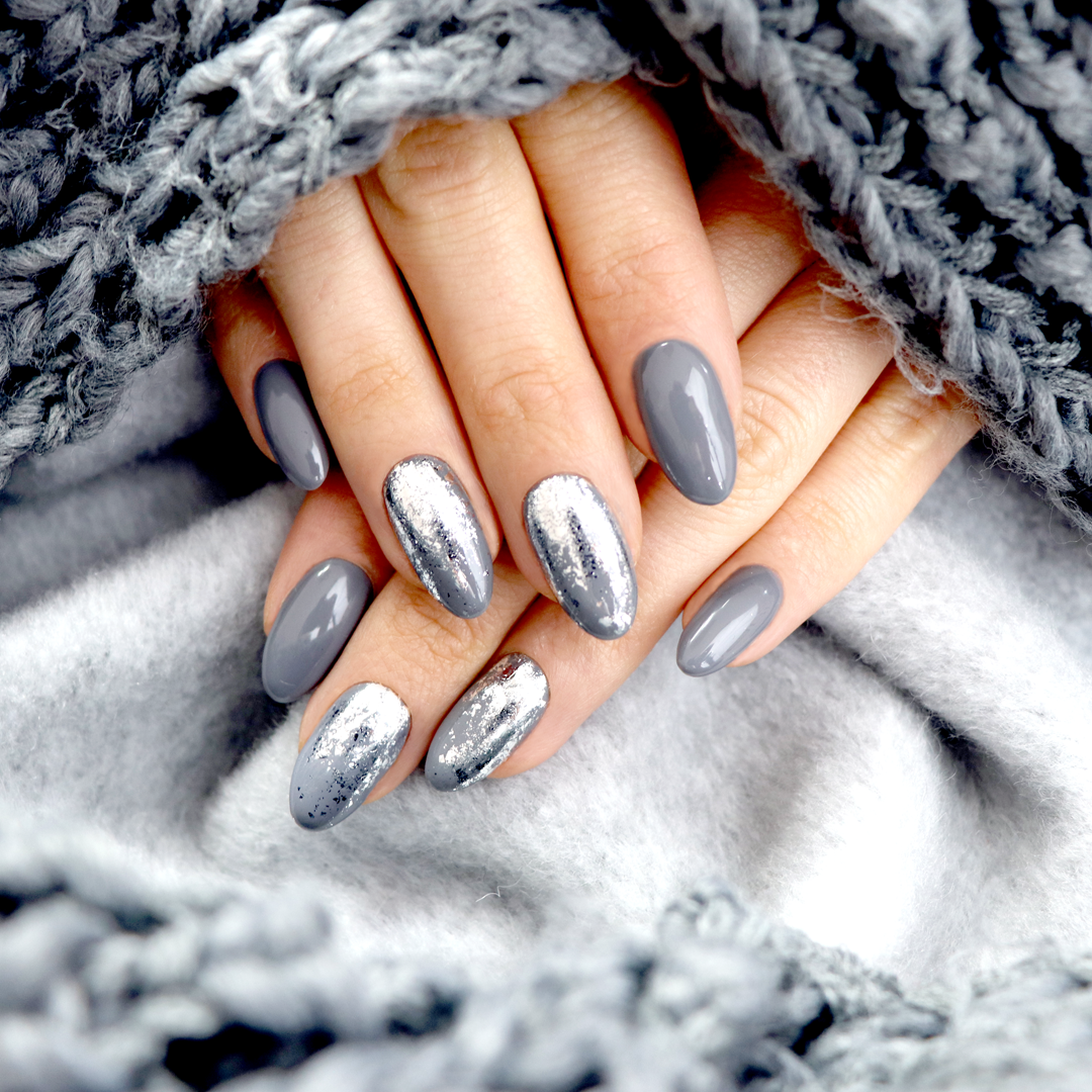 Маникюр серый с серебром