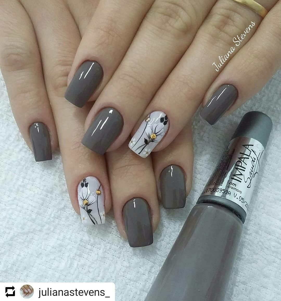 Осенний маникюр серый