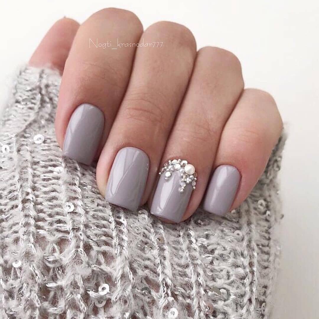 Маникюр однотонный серый