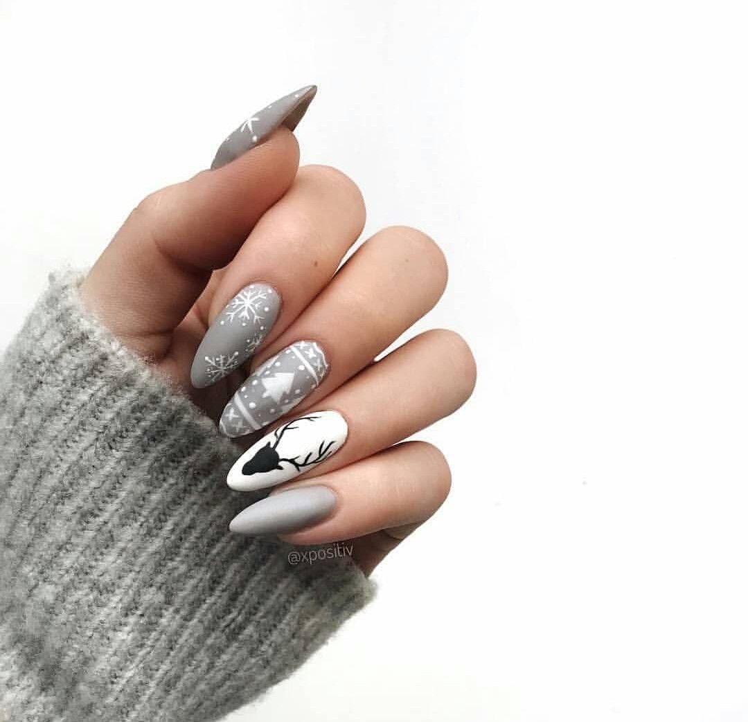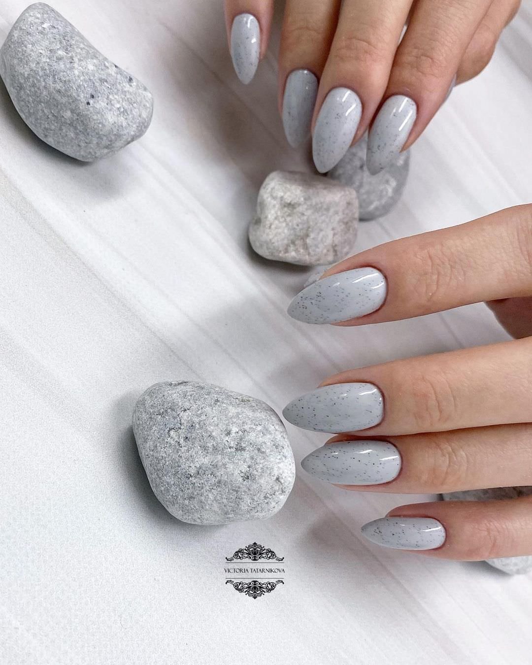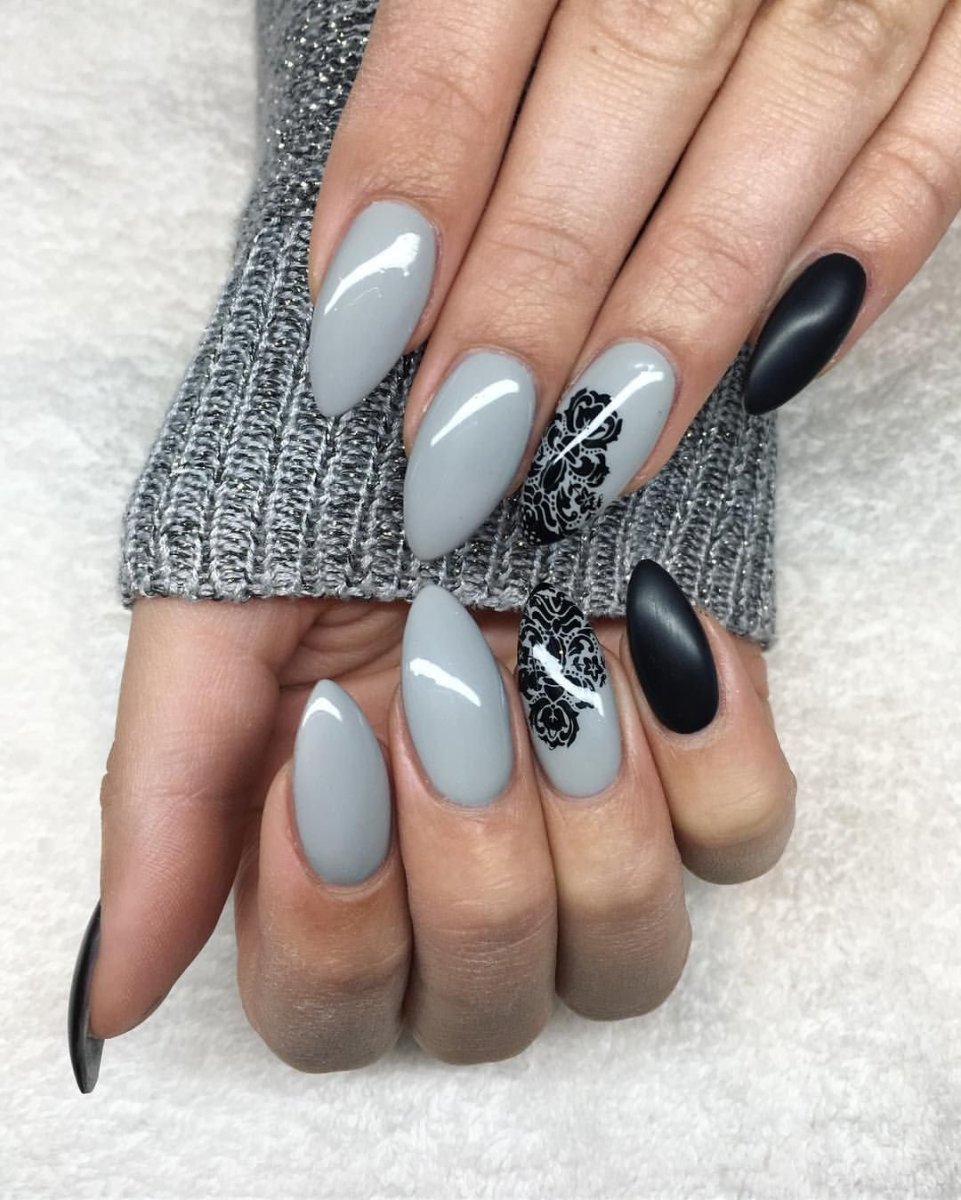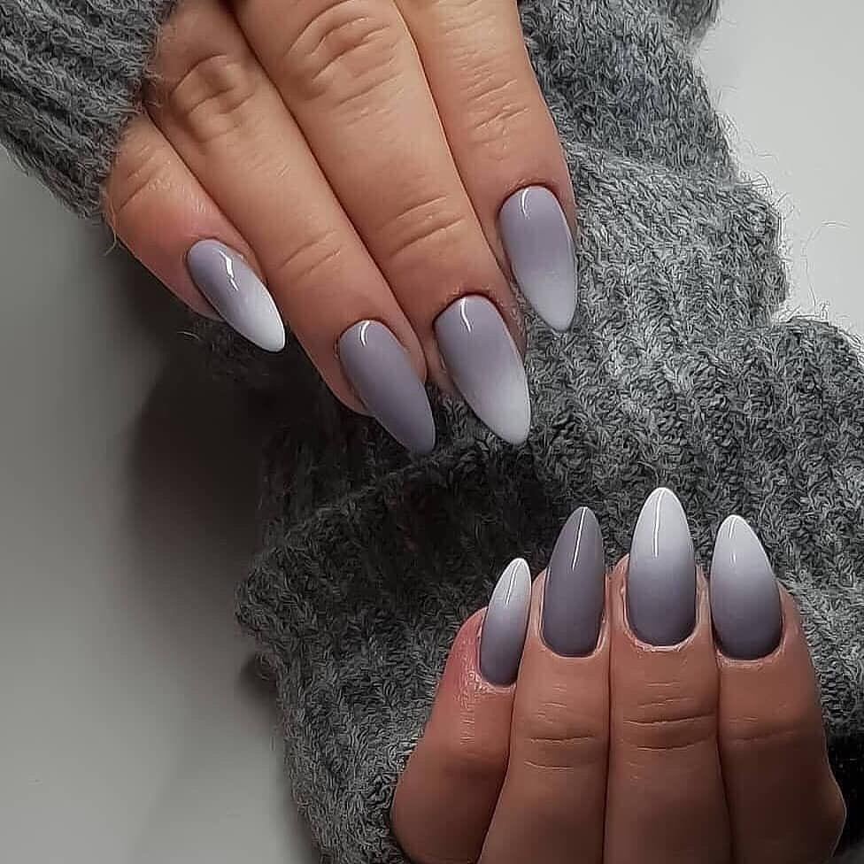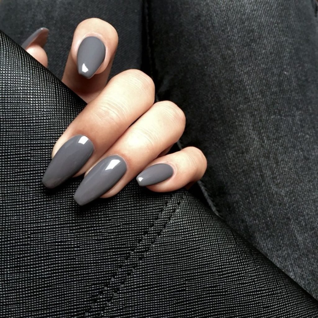 Серый маникюр миндаль