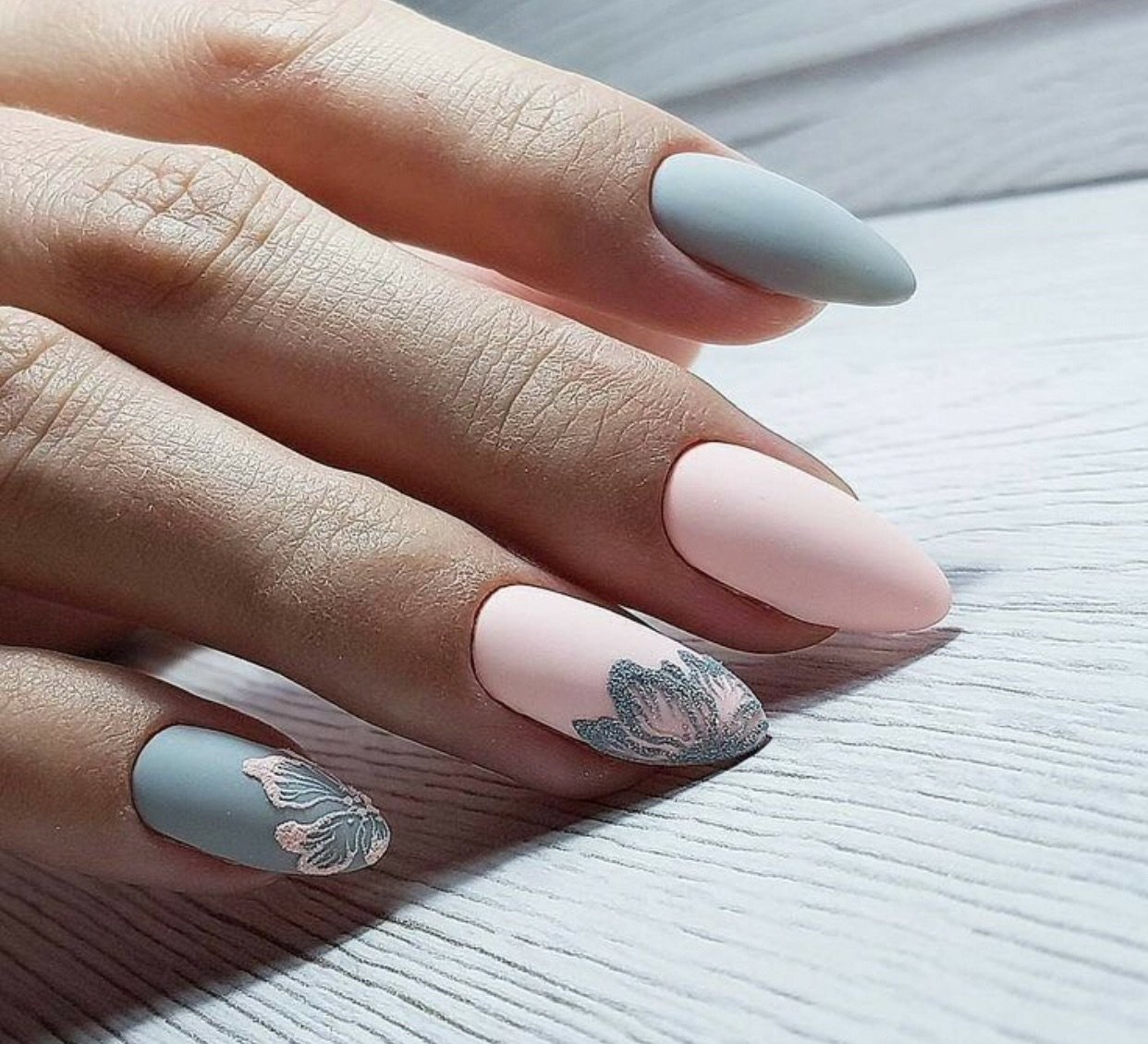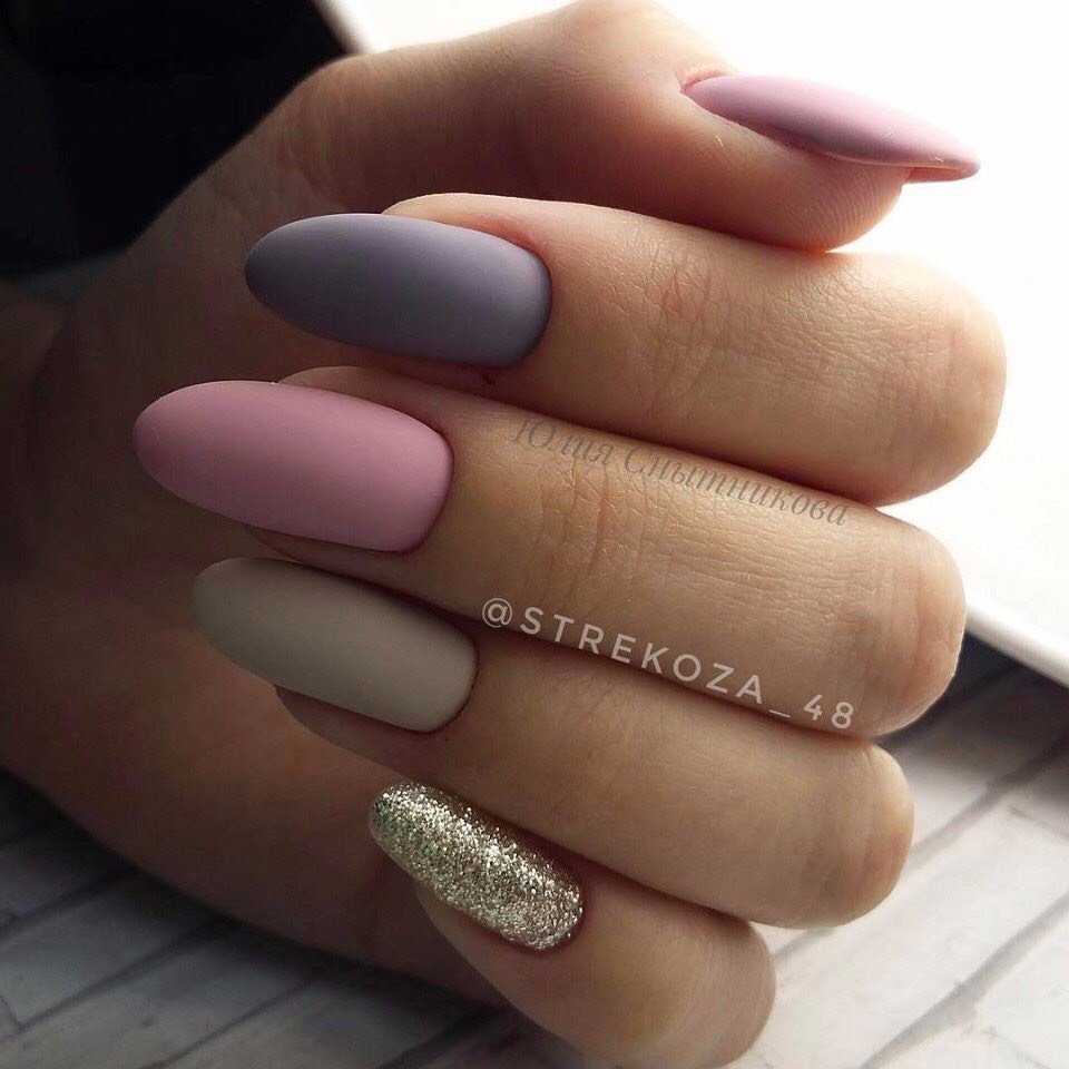 Маникюр нежный 2021 миндалевидные ногти матовый