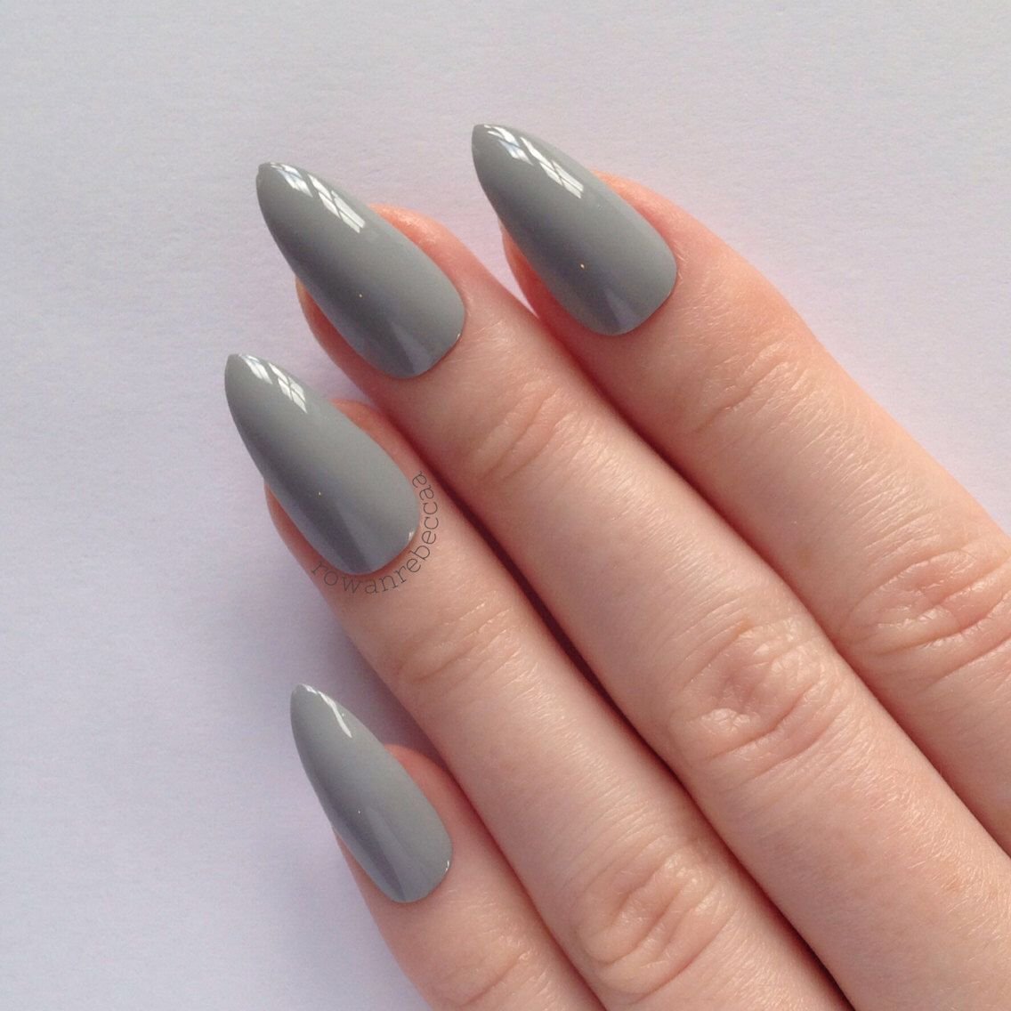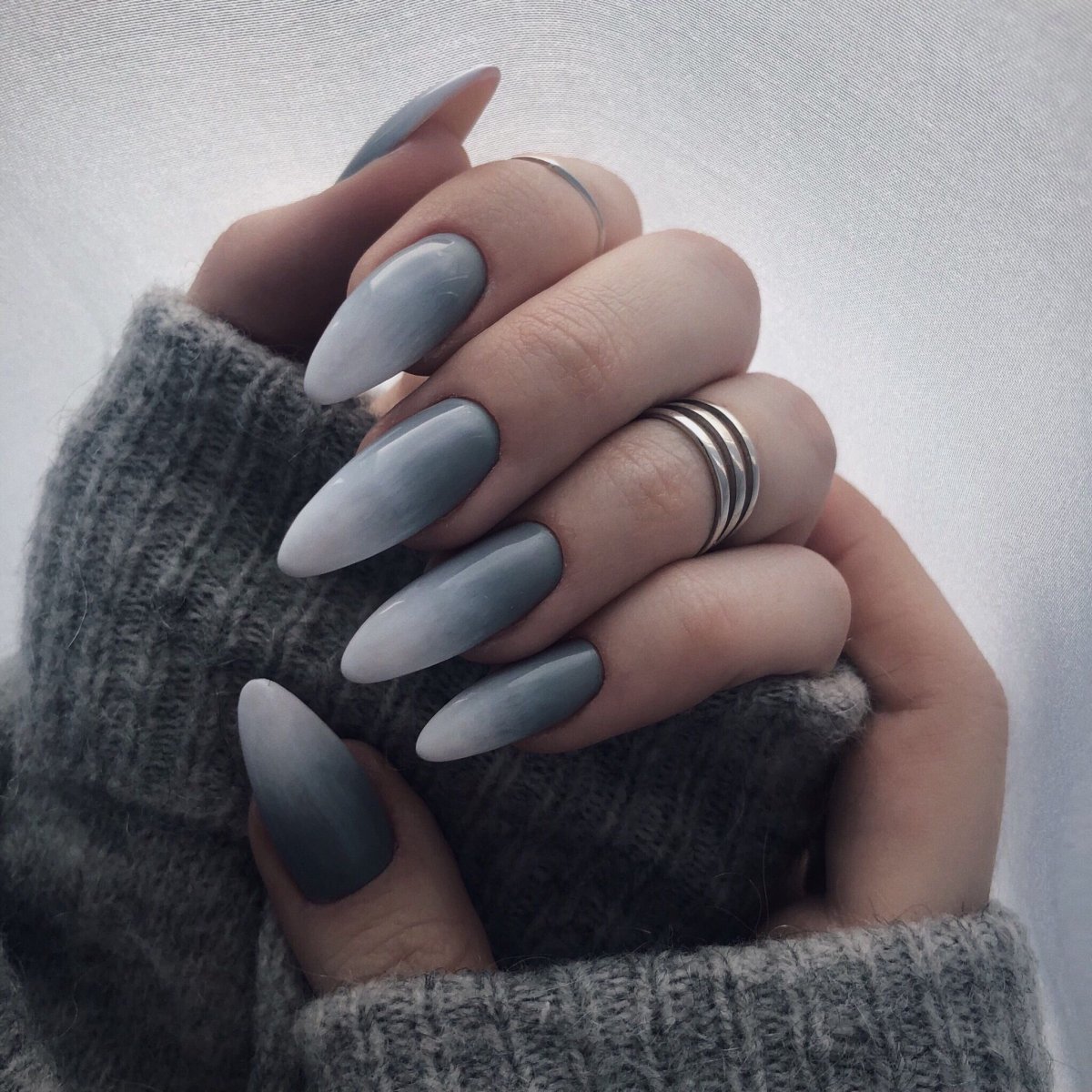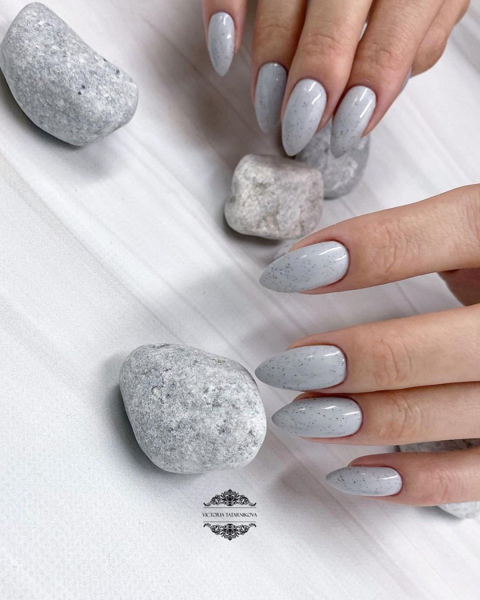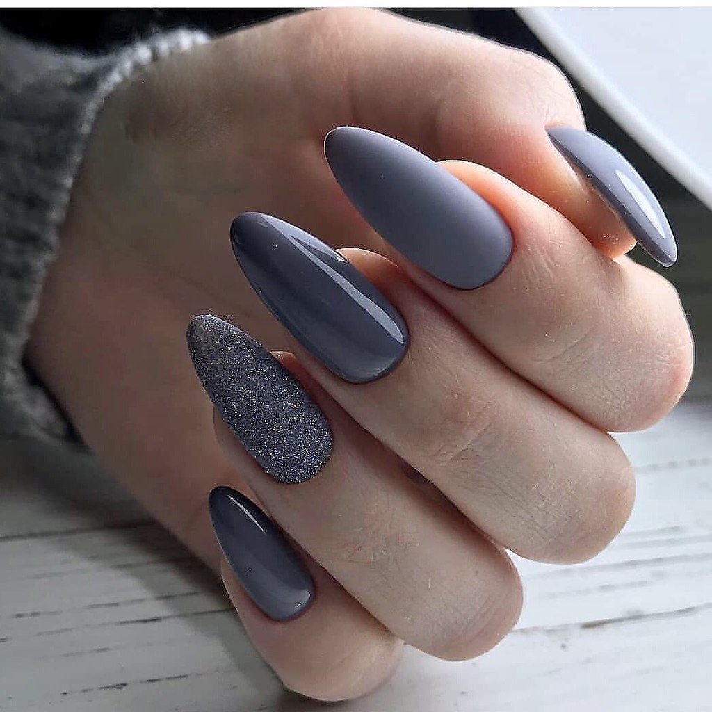 Серый маникюр на миндалевидных ногтях