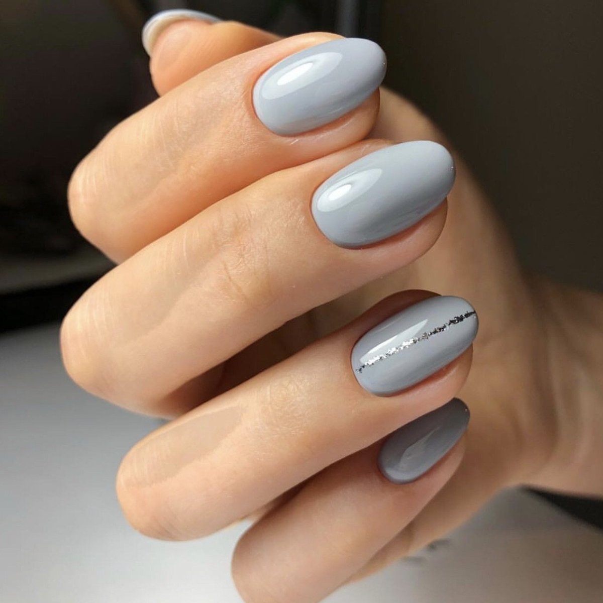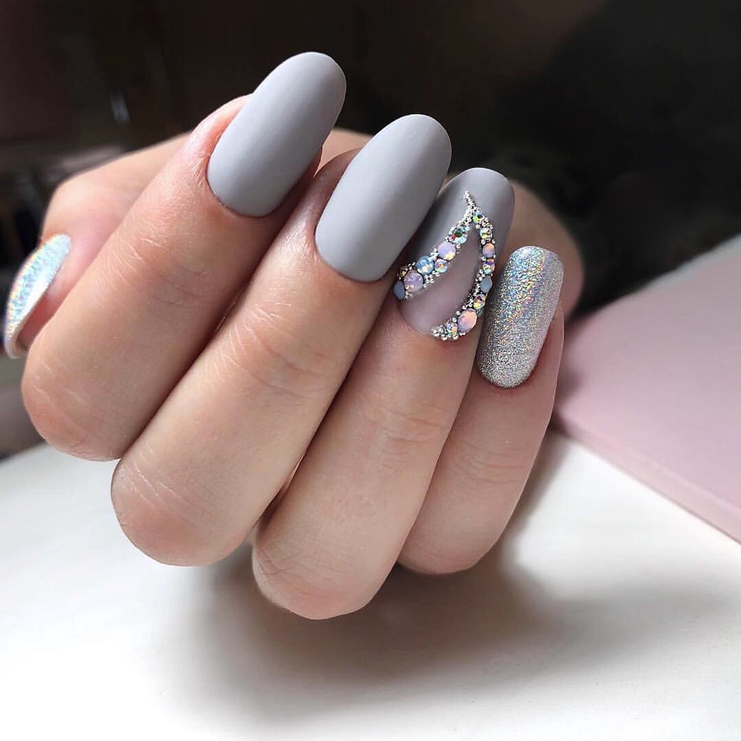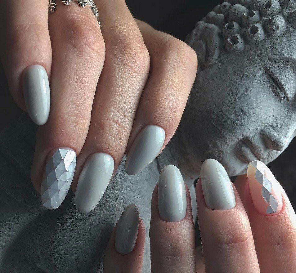 Серый маникюр на овальные ногти