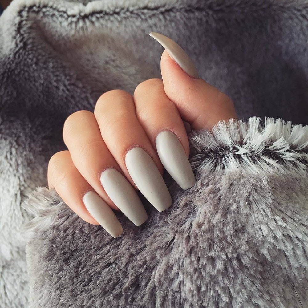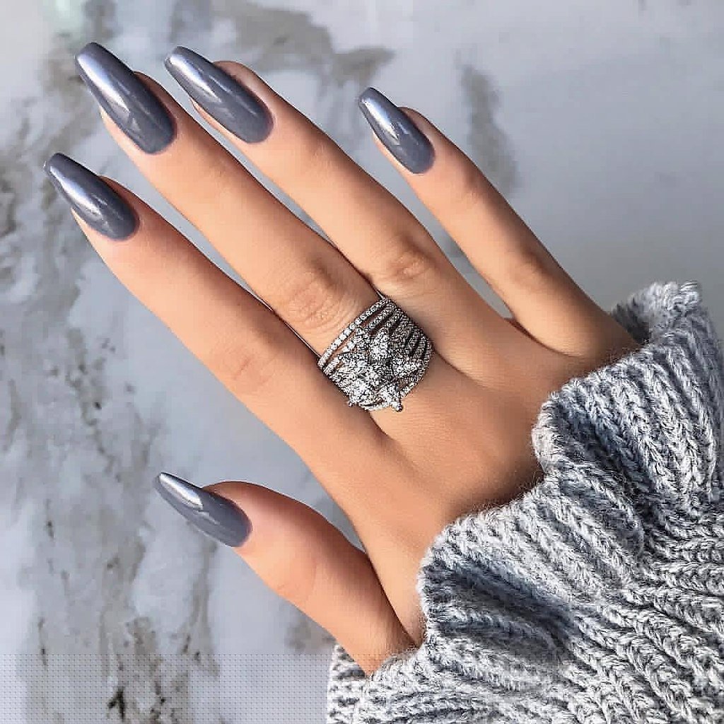 Серый маникюр на длинные ногти