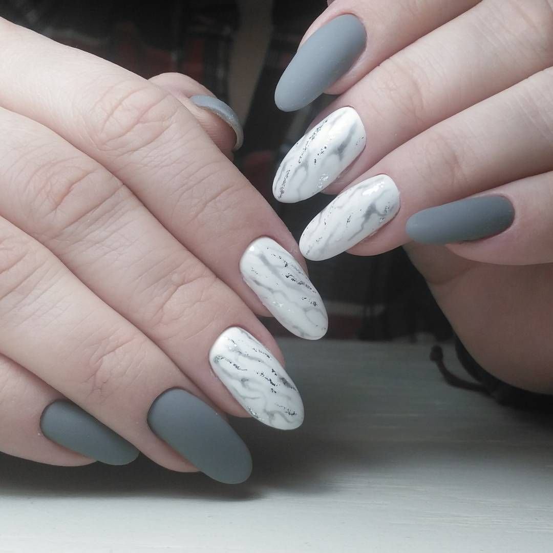 Серый мраморный маникюр