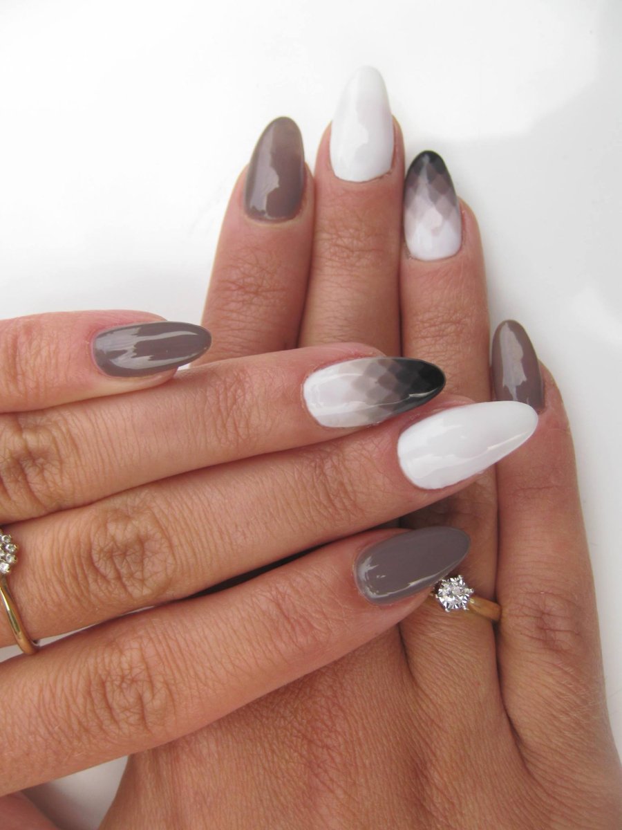 Маникюр серый с белым