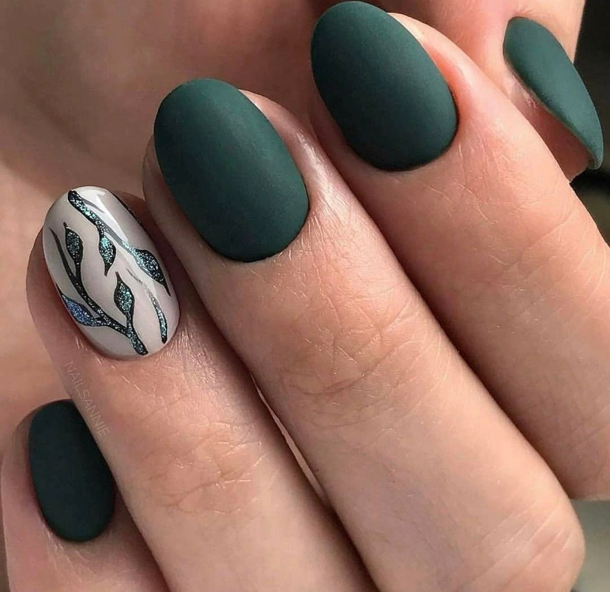 Маникюр изумрудный матовый 2021