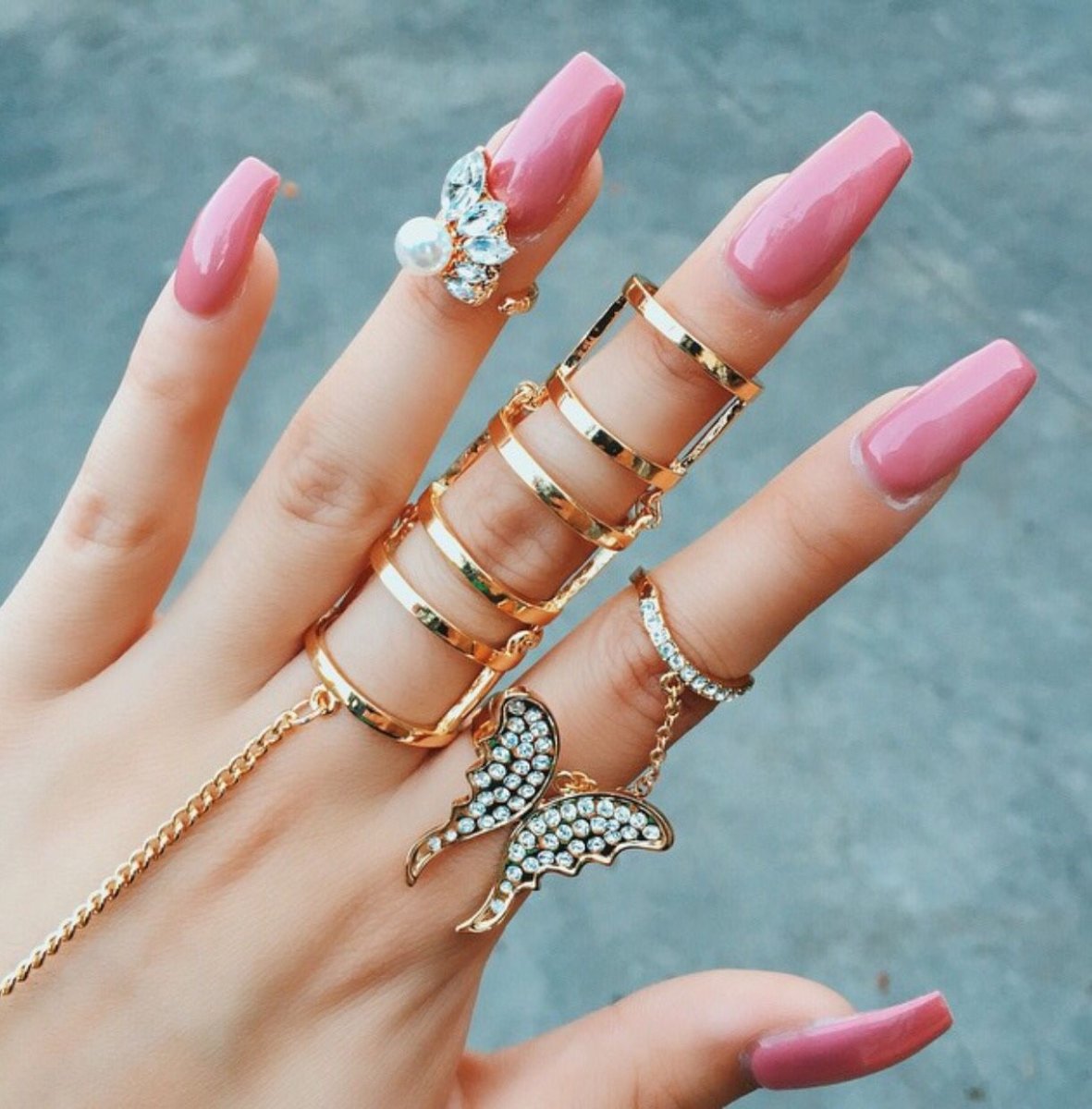 Красивое сочетание колец на руке
