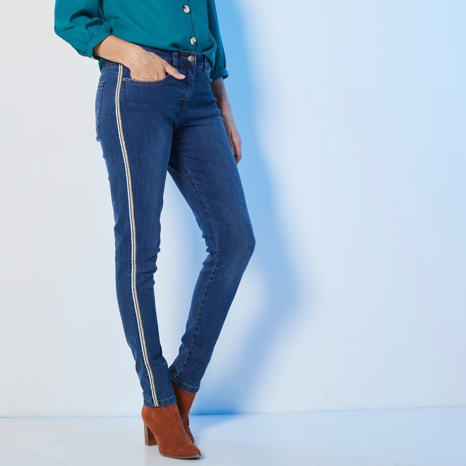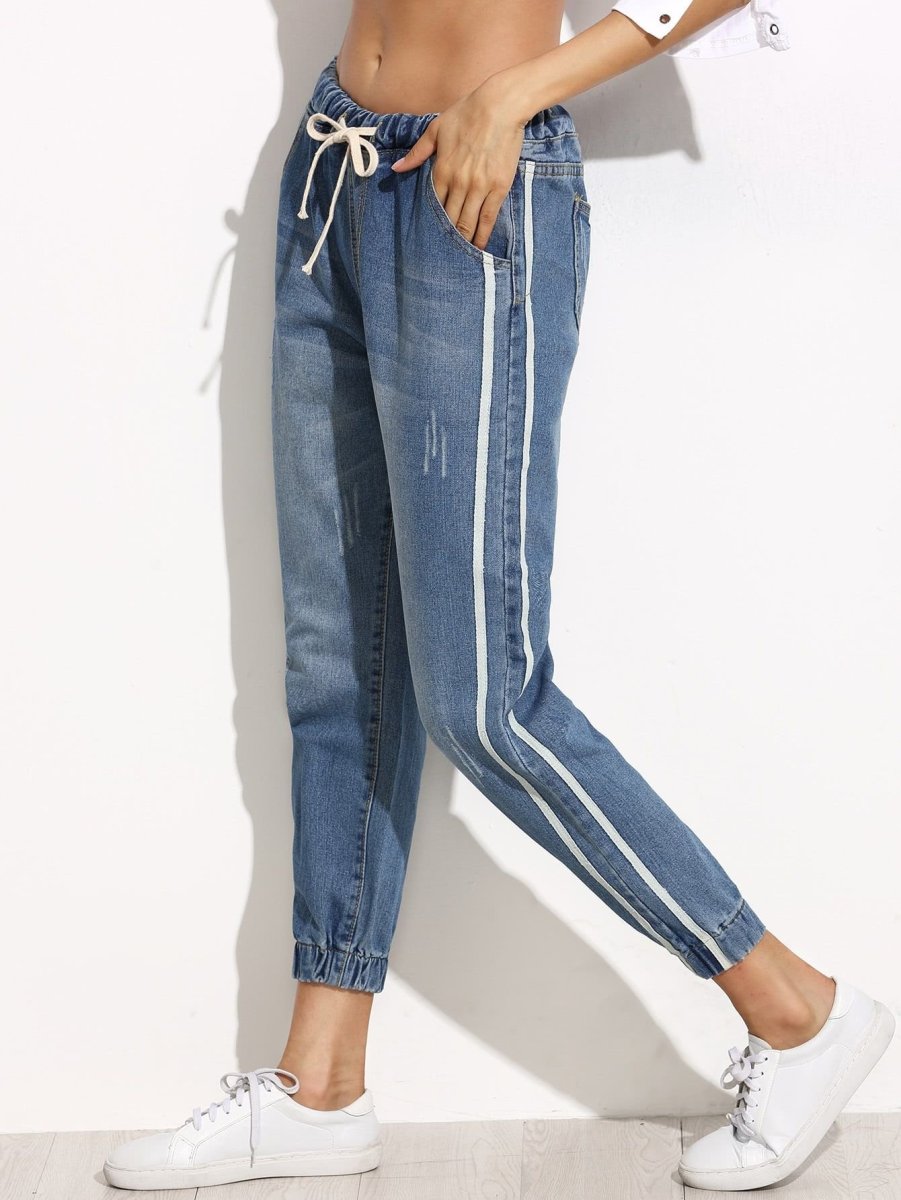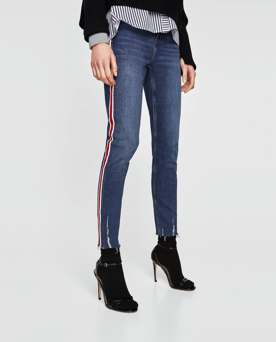 Узкие джинсы с лампасами женские