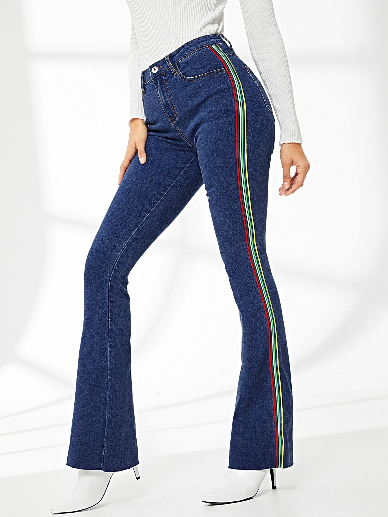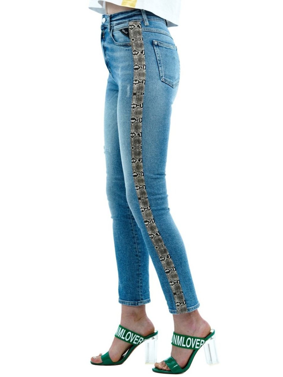 Джинсы в полоску женские