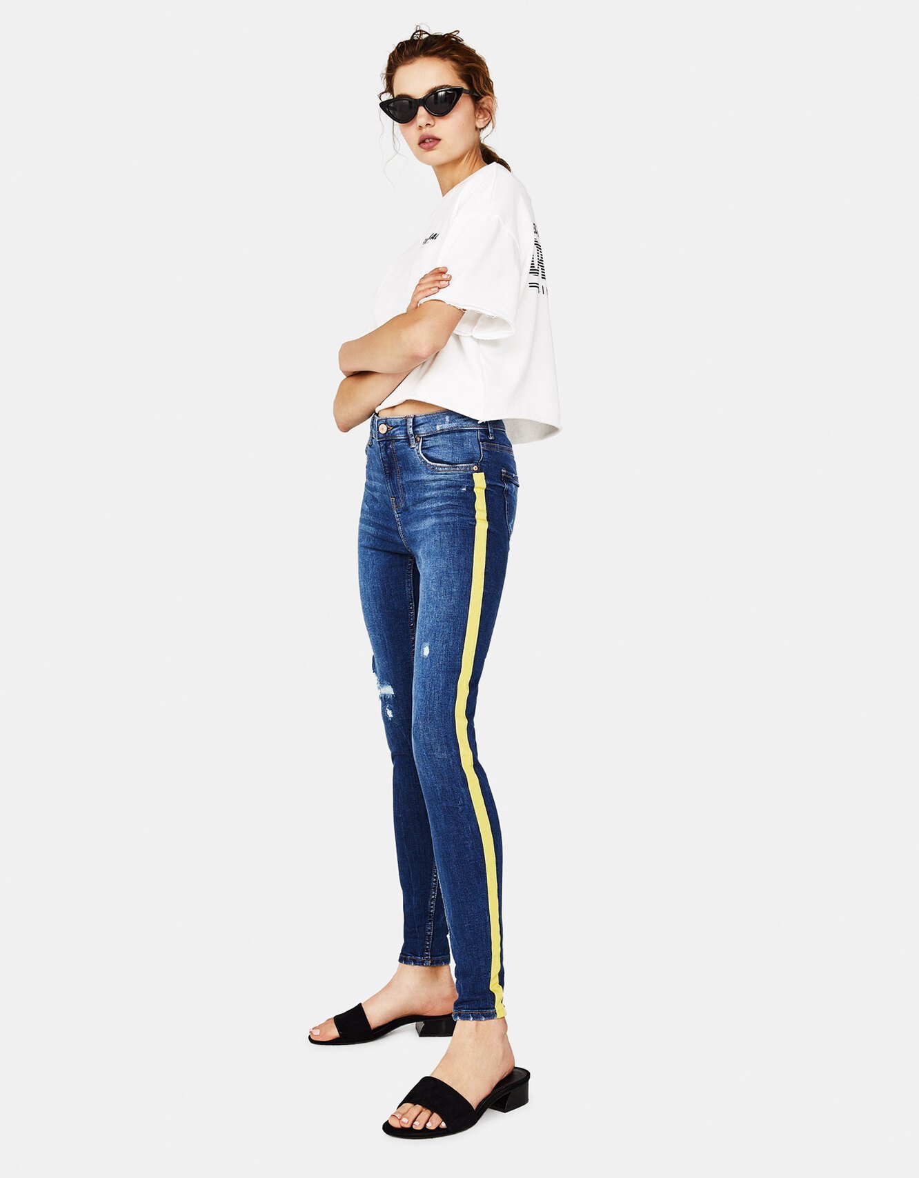 Джинсы скинни с лампасами