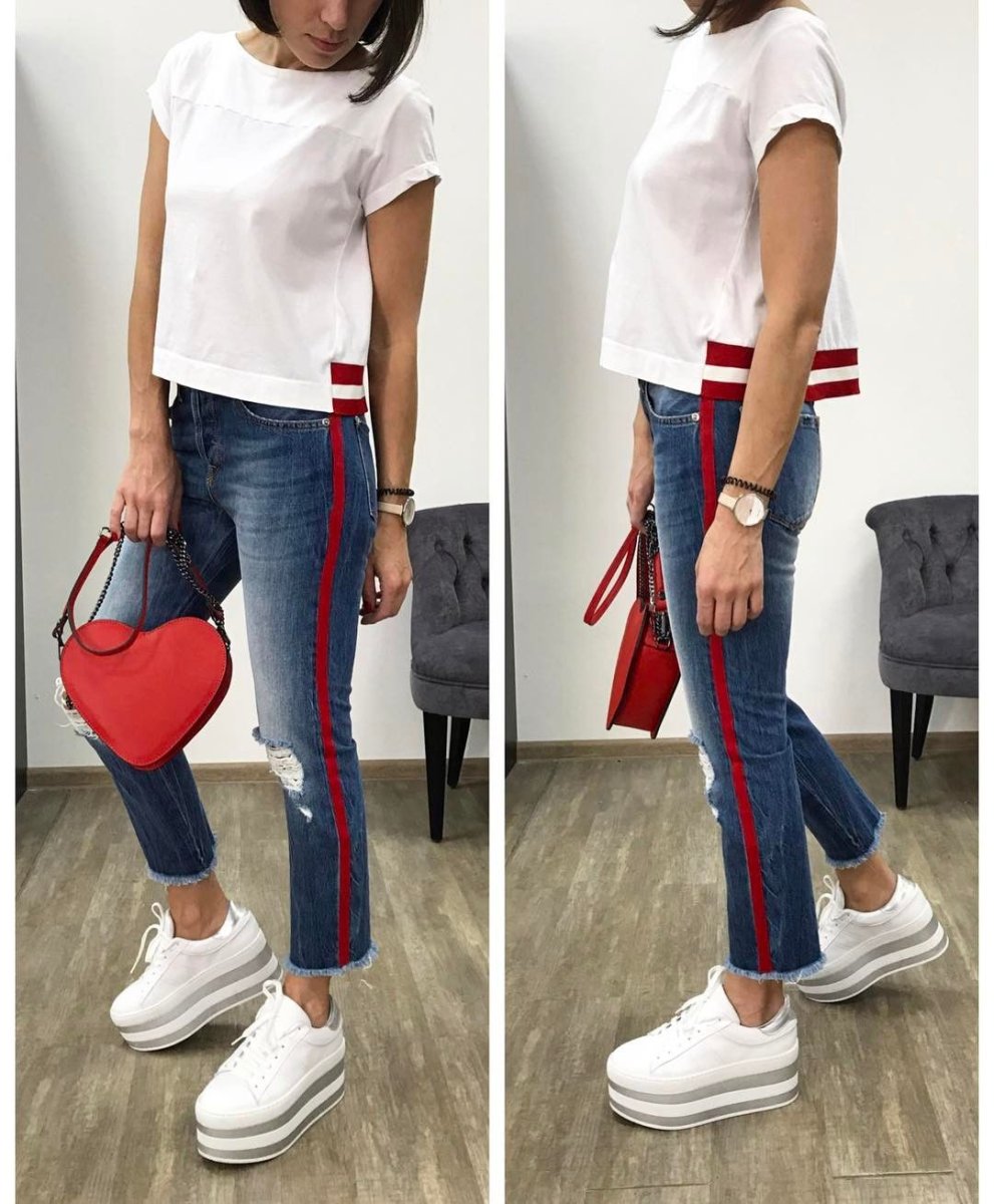 Джинсы с красными лампасами