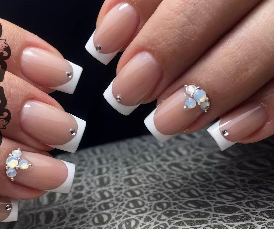 Ногти френч белый со стразами