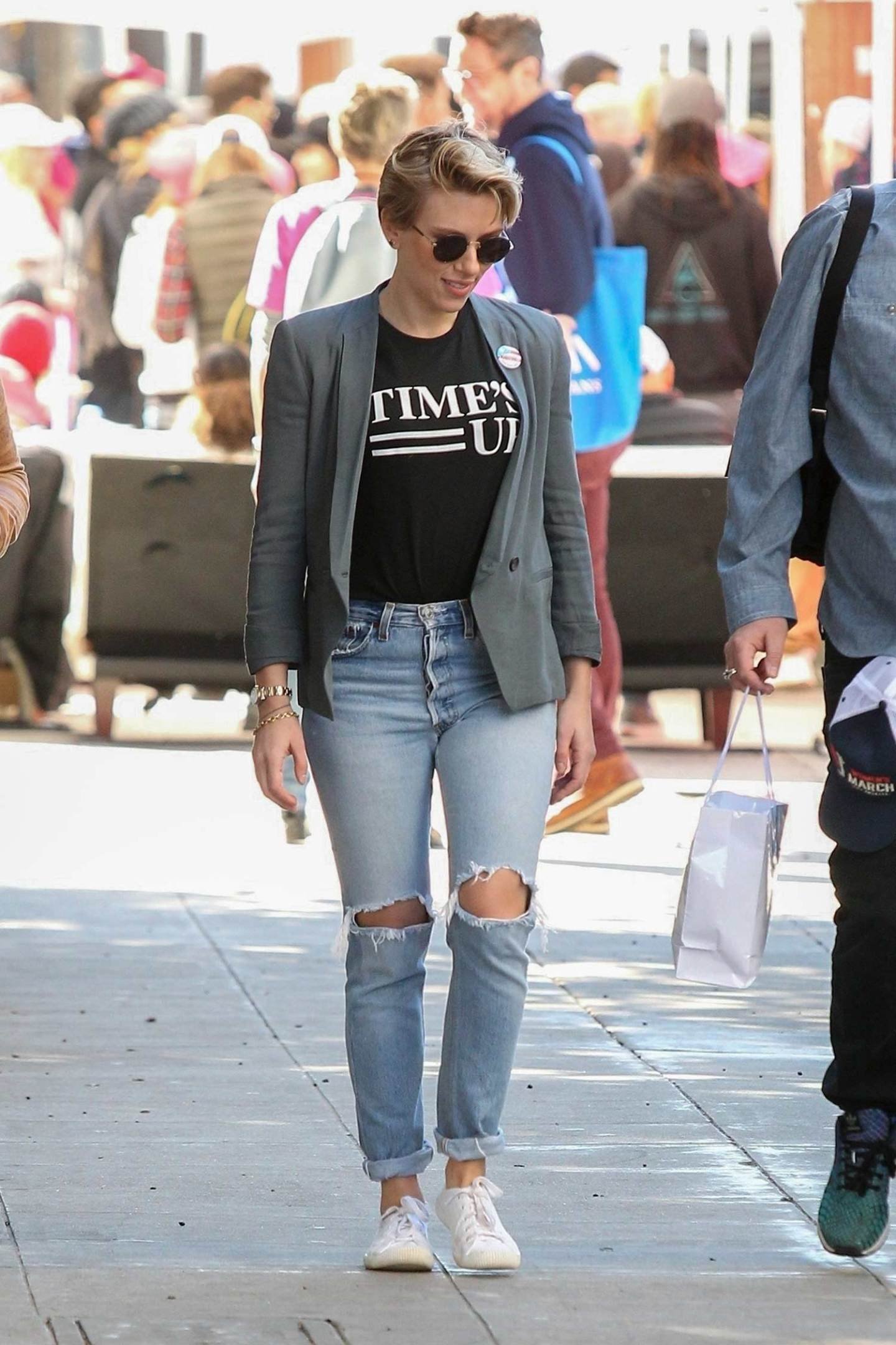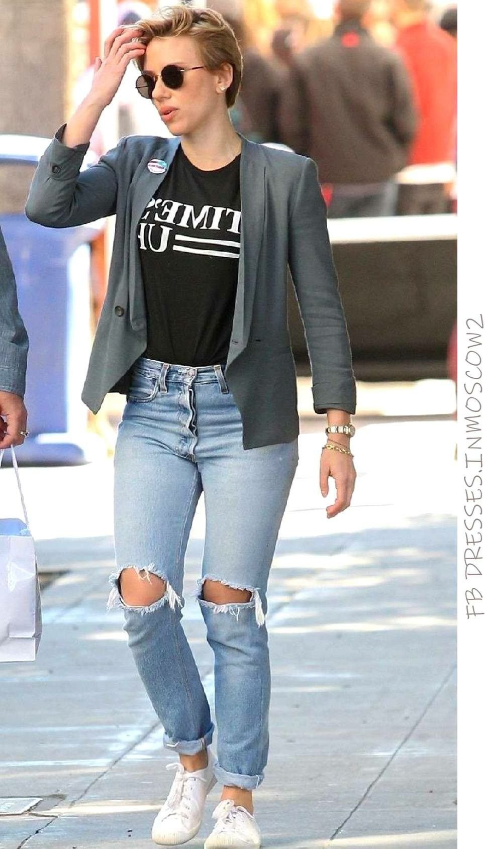 Скарлетт Йоханссон с короткой стрижкой в полный рост