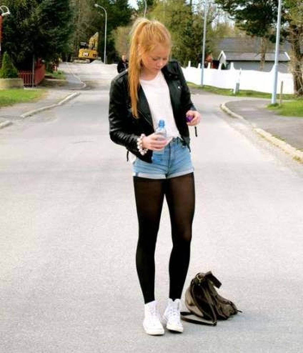 Шорты с черными колготками