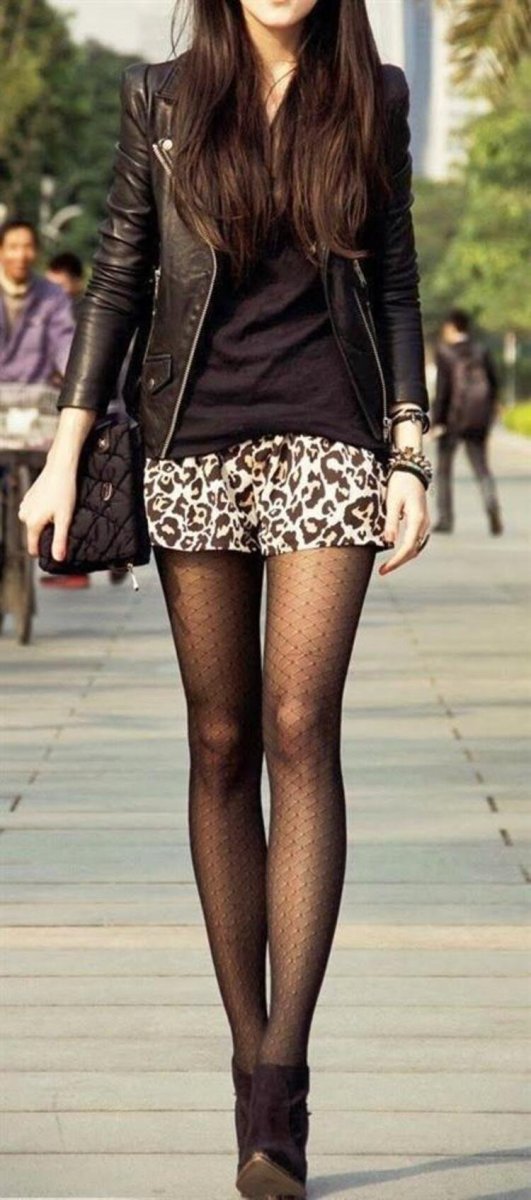 Кожаные шорты с колготками