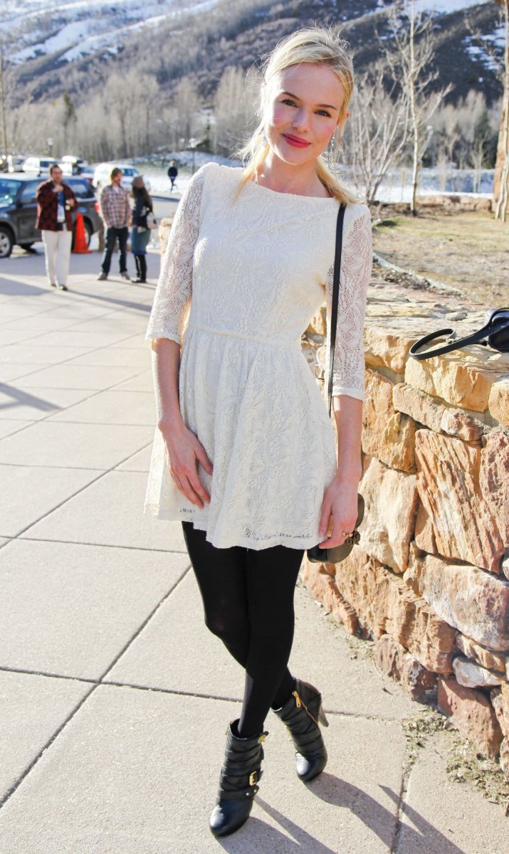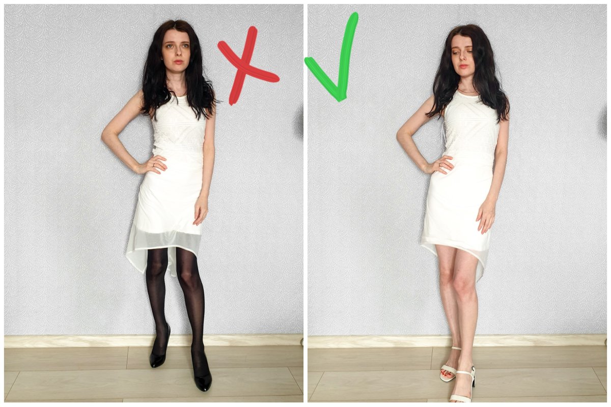 Светлое платье с темными колготками