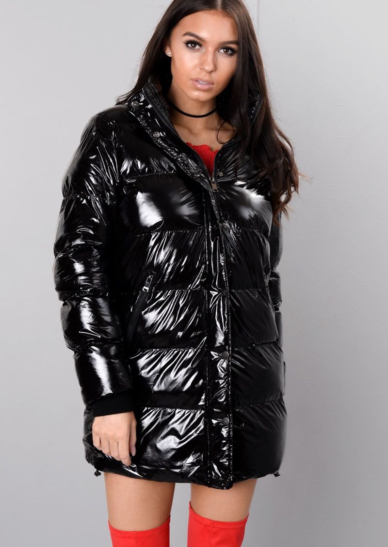 Черный лакированный пуховик в стиле Oversized Nike
