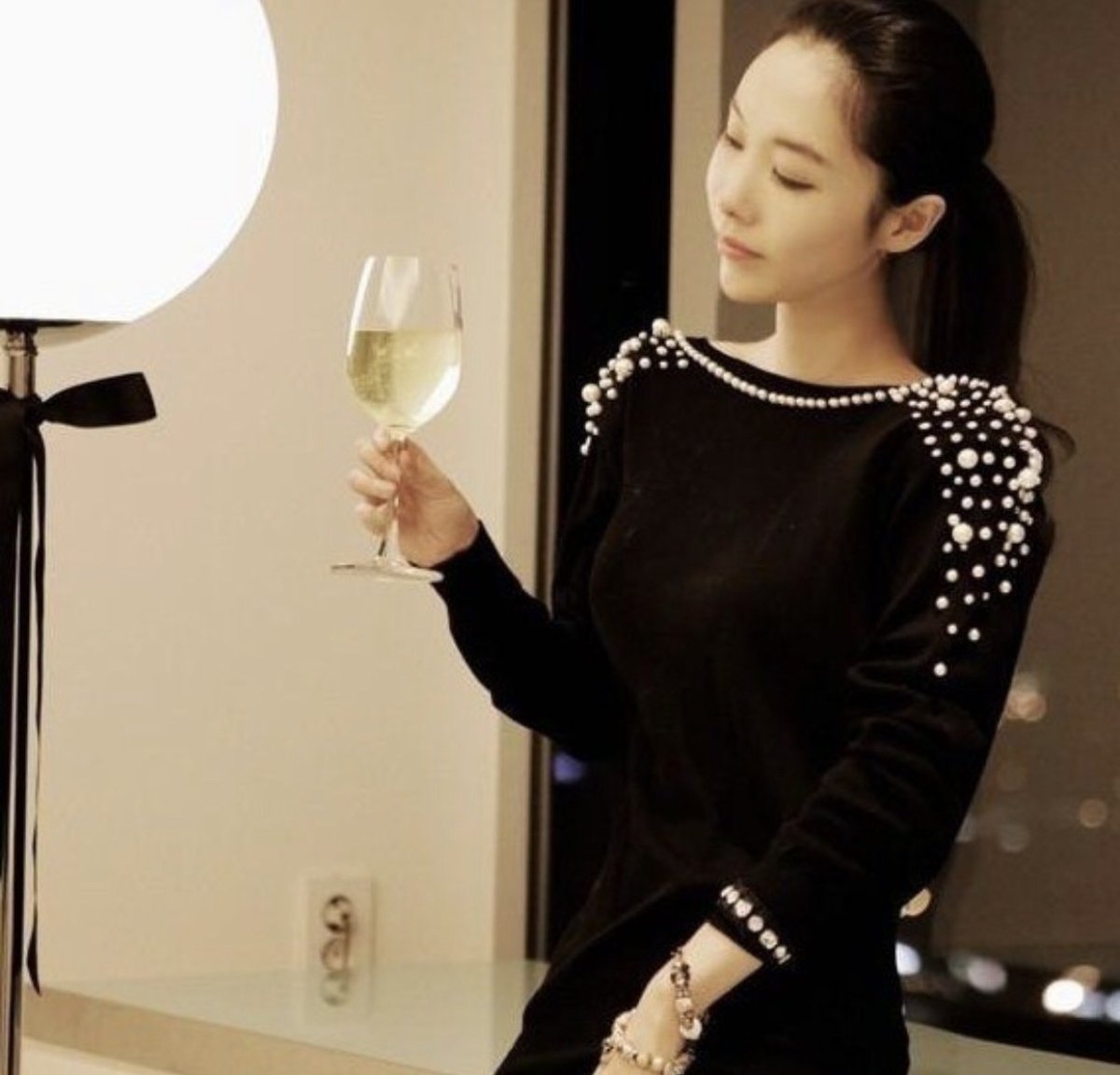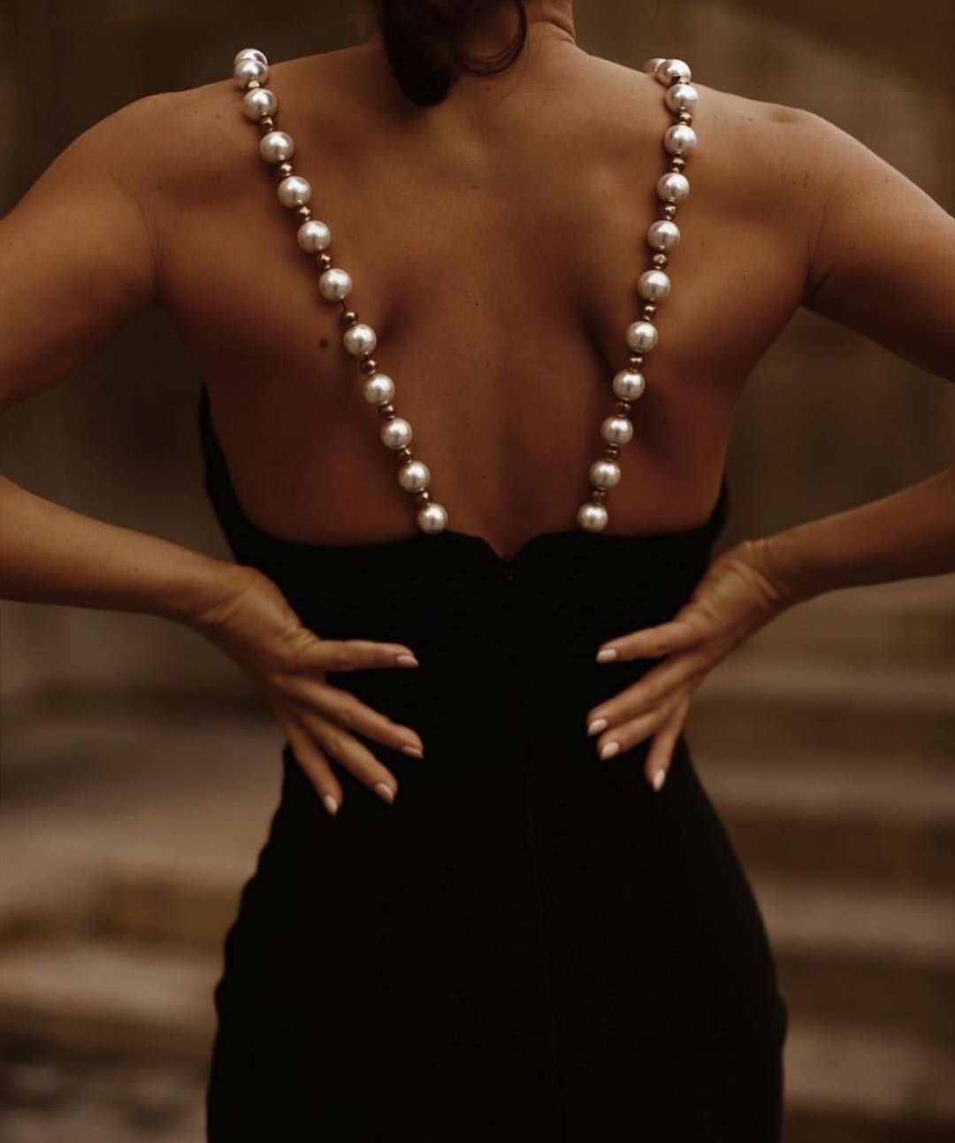Черное платье с жемчугом