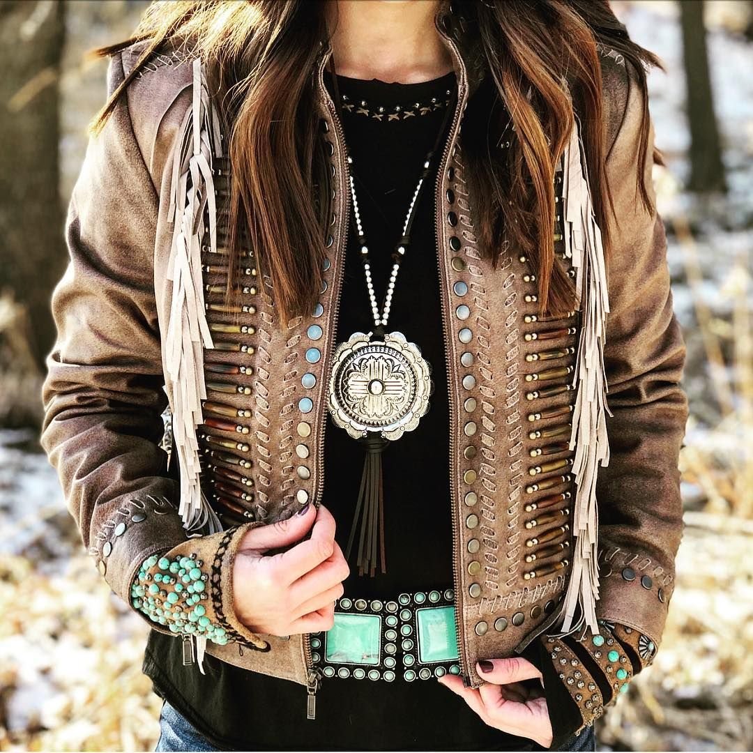 Кожаная куртка в стиле бохо
