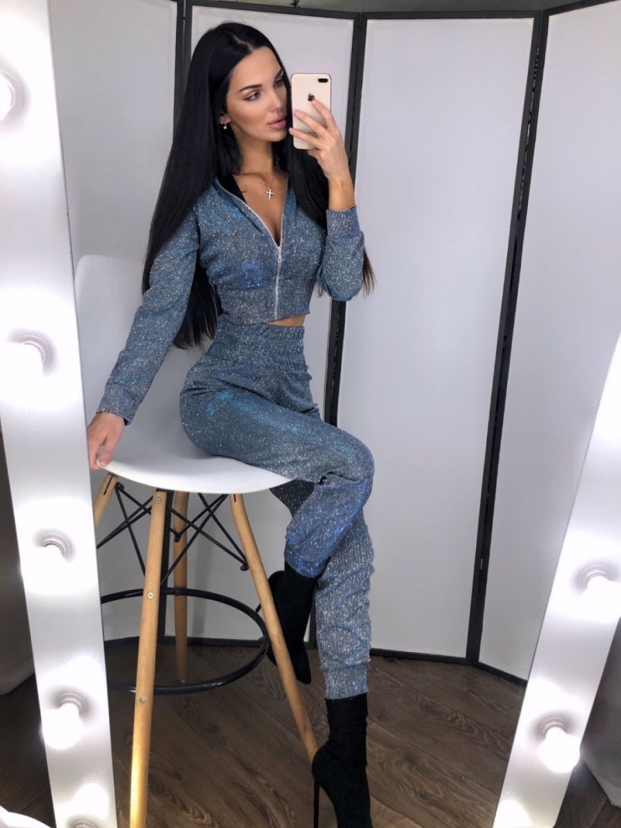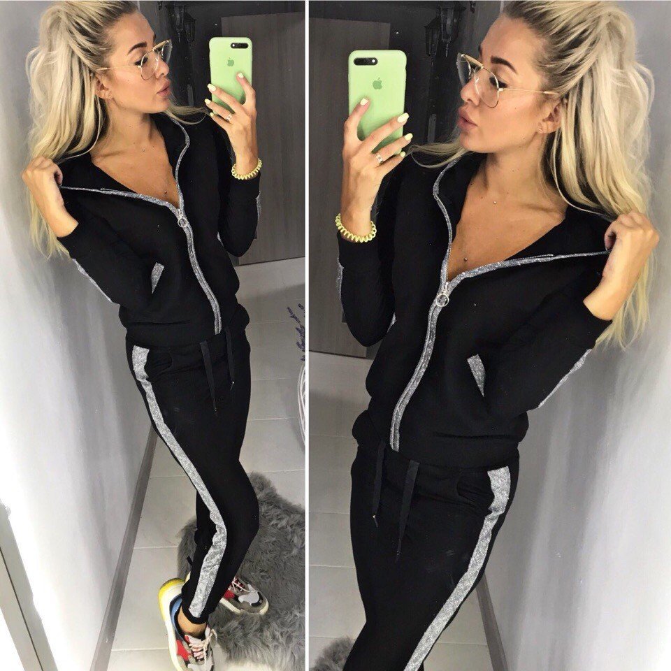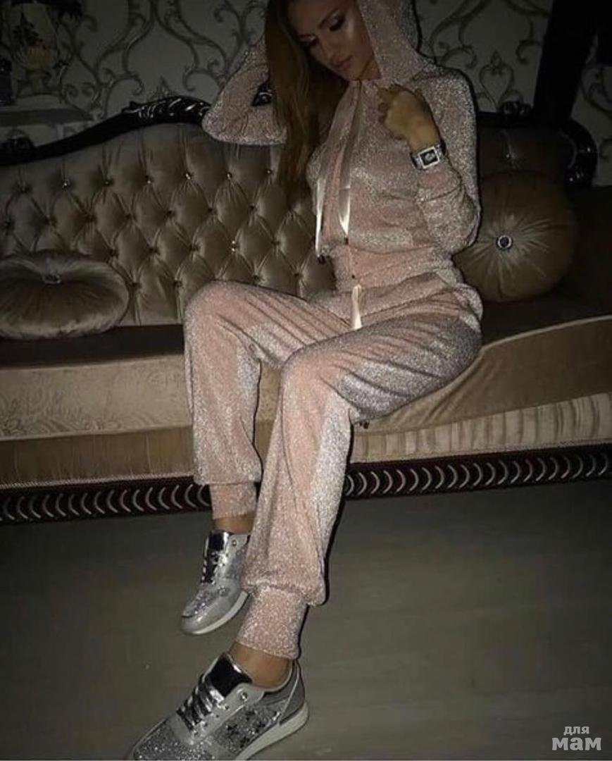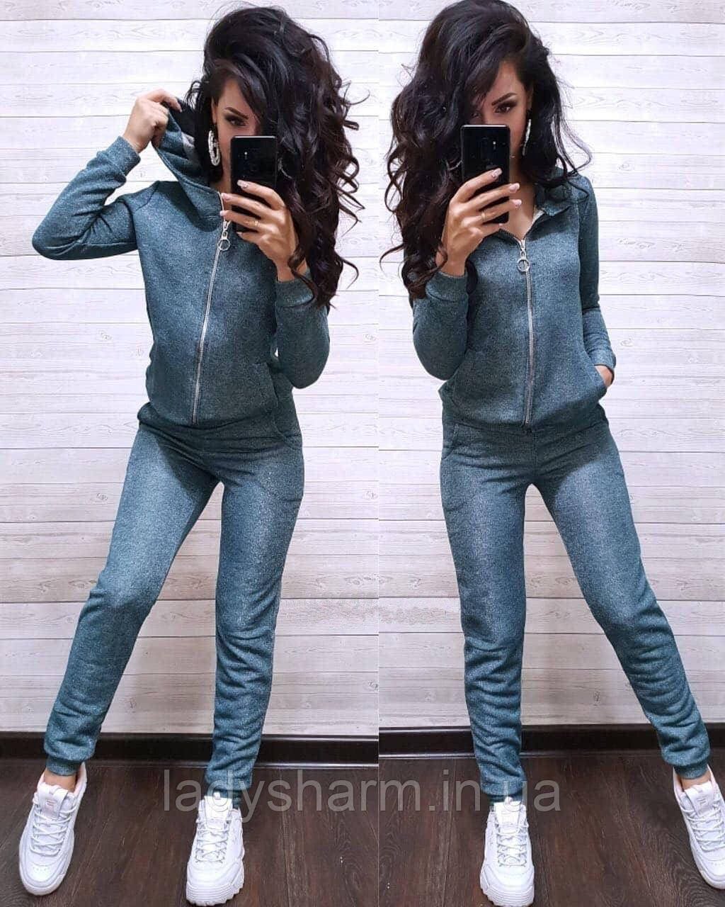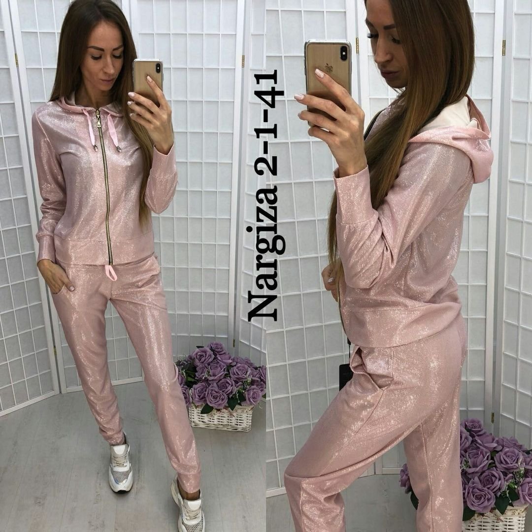 Трикотажный спортивный костюм с люрексом с капюшоном