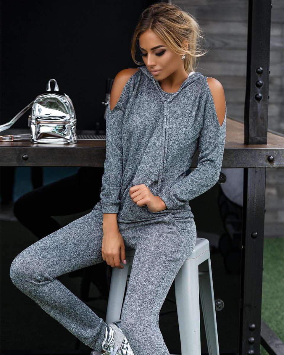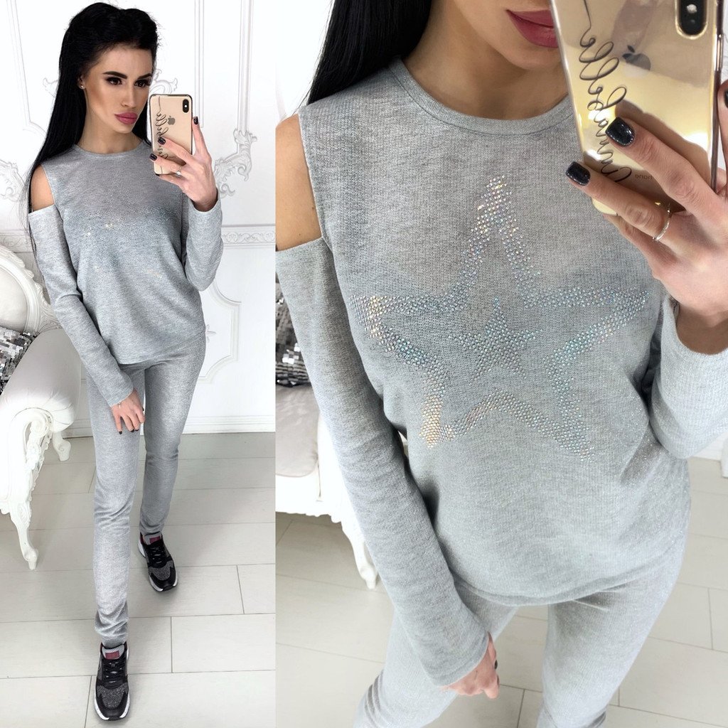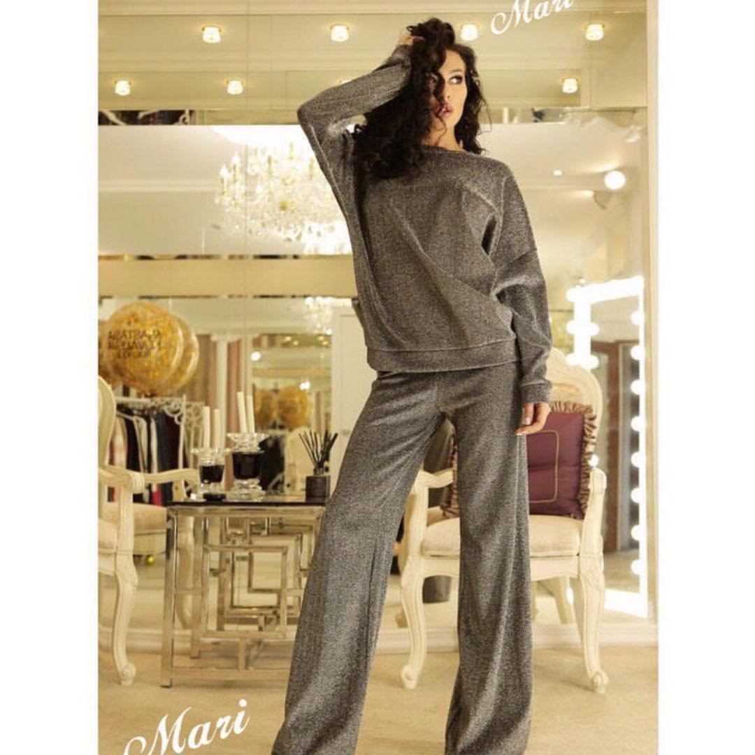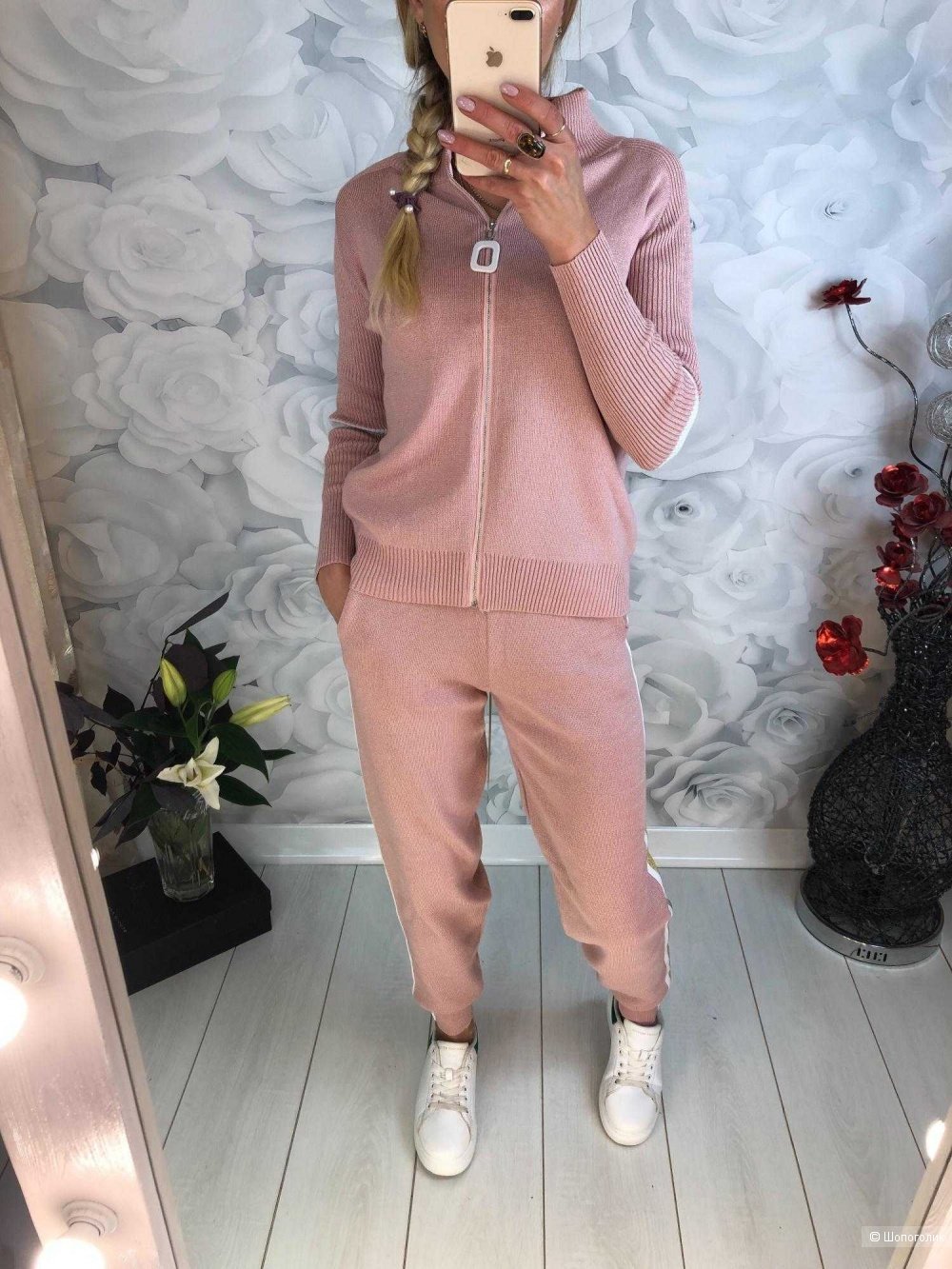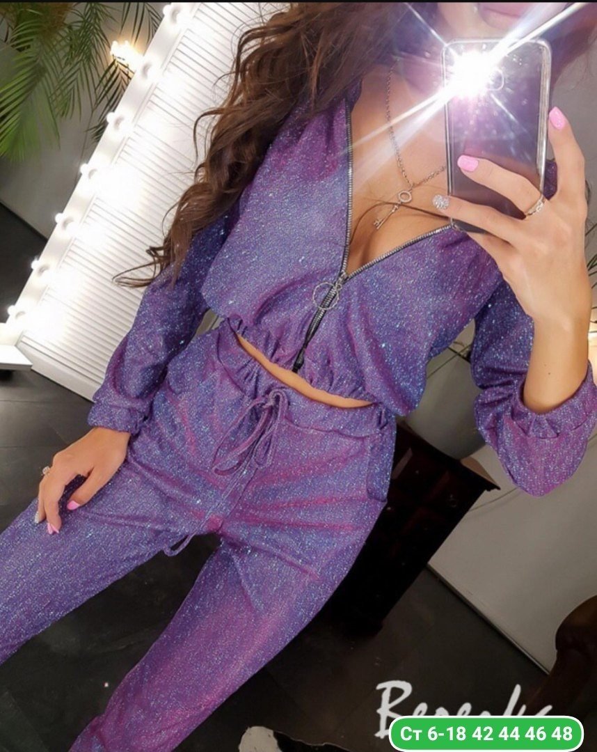 Трикотажный спортивный костюм с люрексом с капюшоном