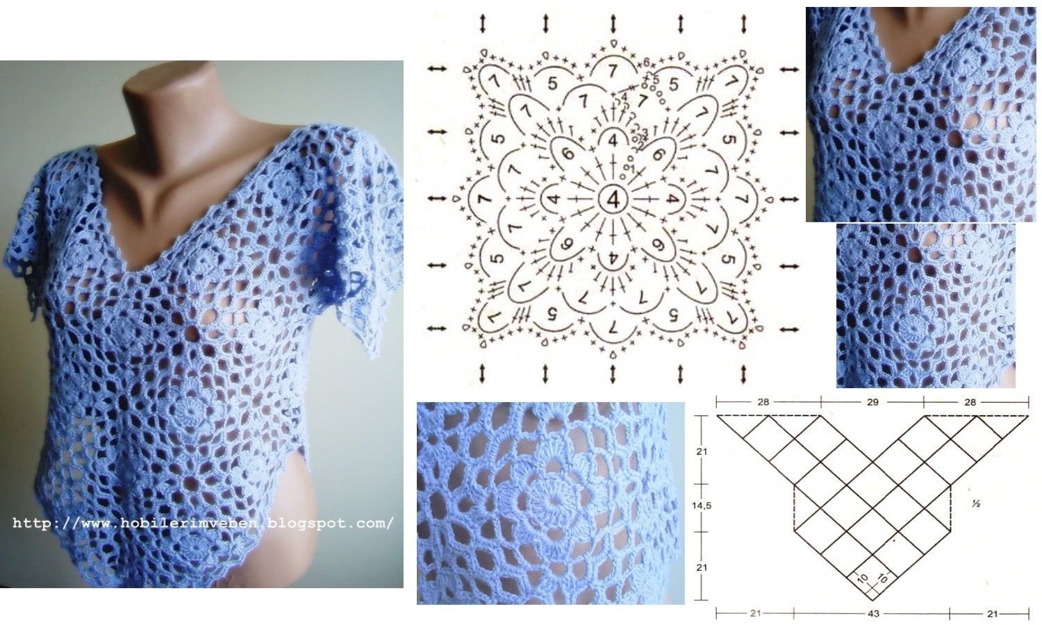 Квадратные мотивы для блузок крючком