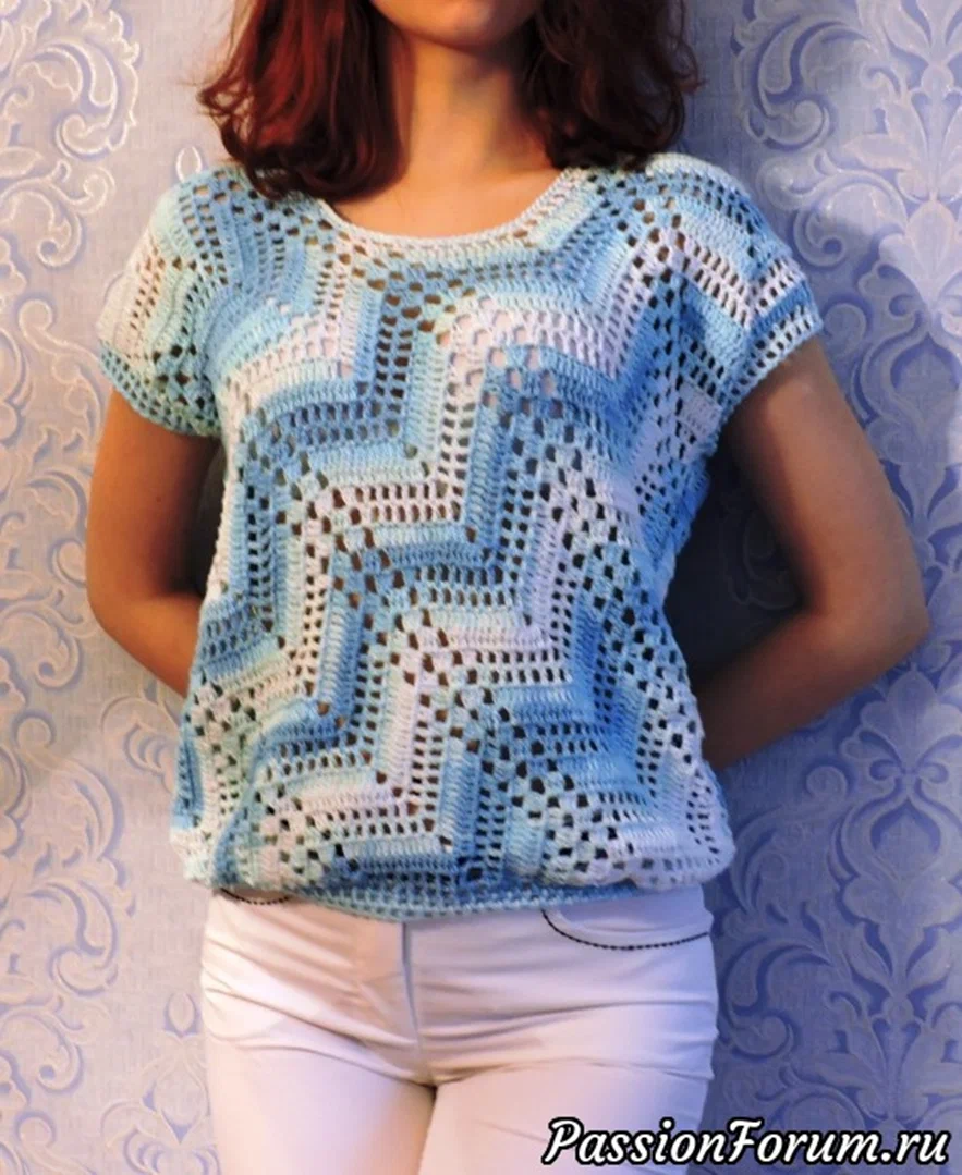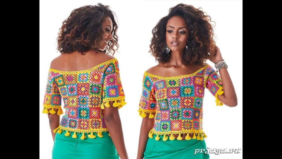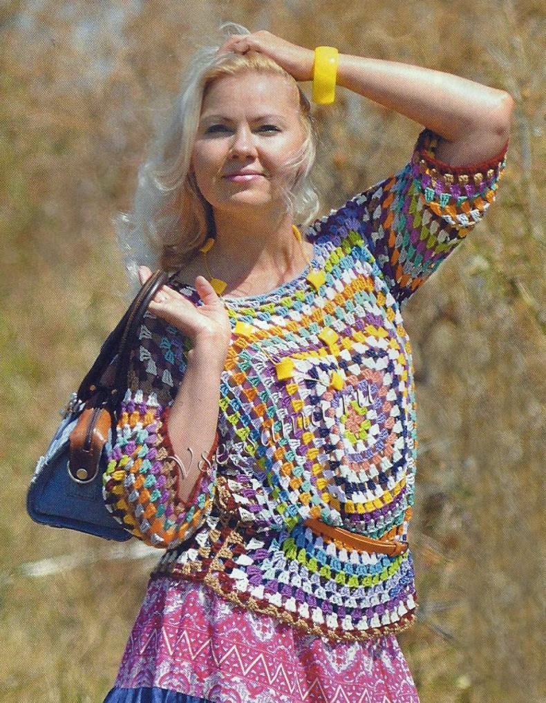 Блузка крючком Бабушкин квадрат