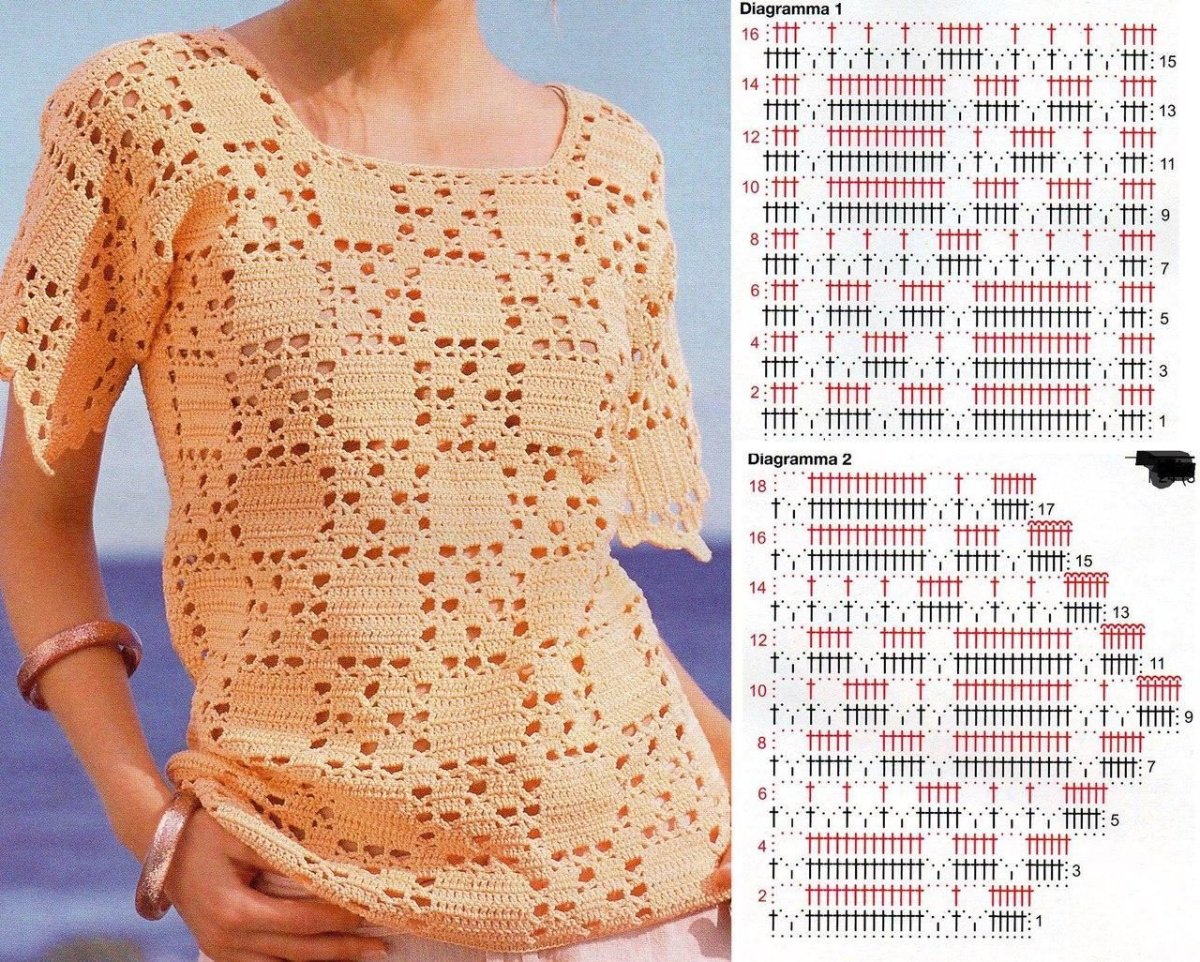 Модные топы крючком схемы