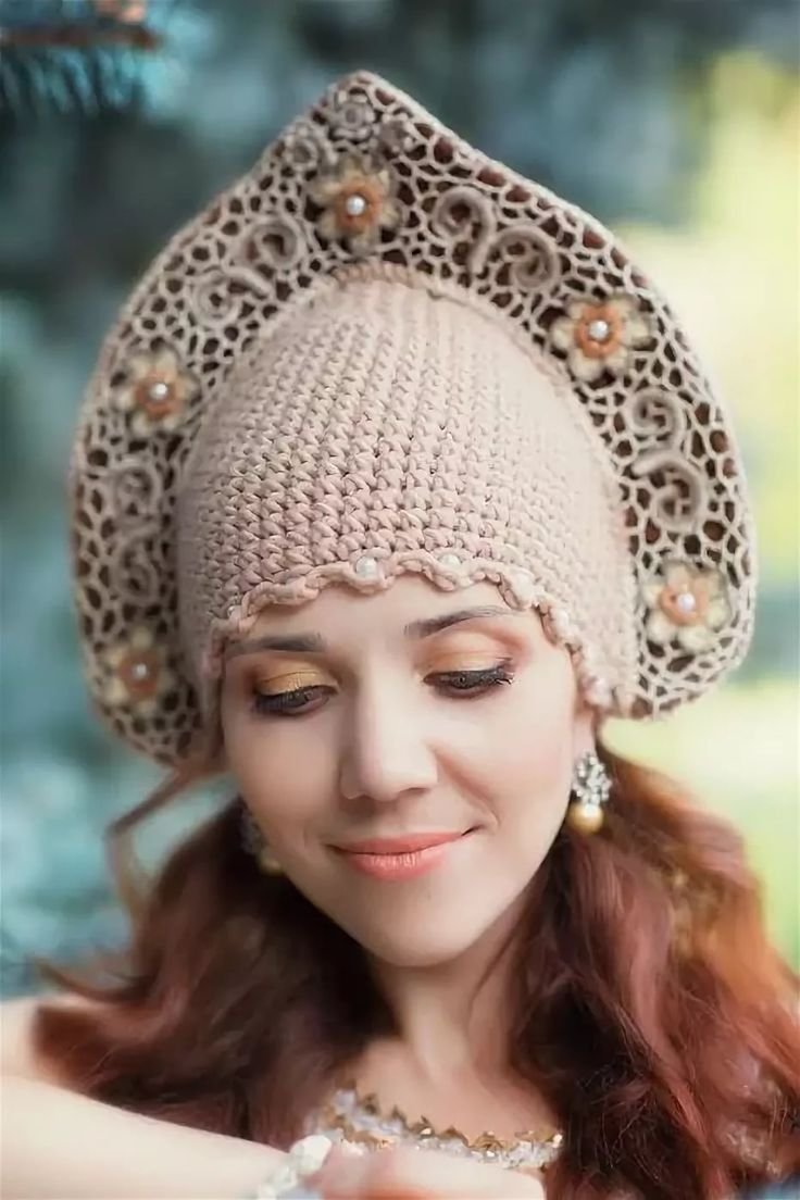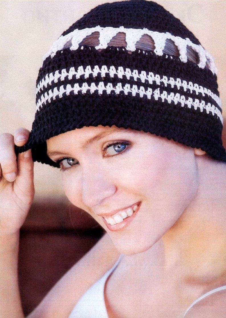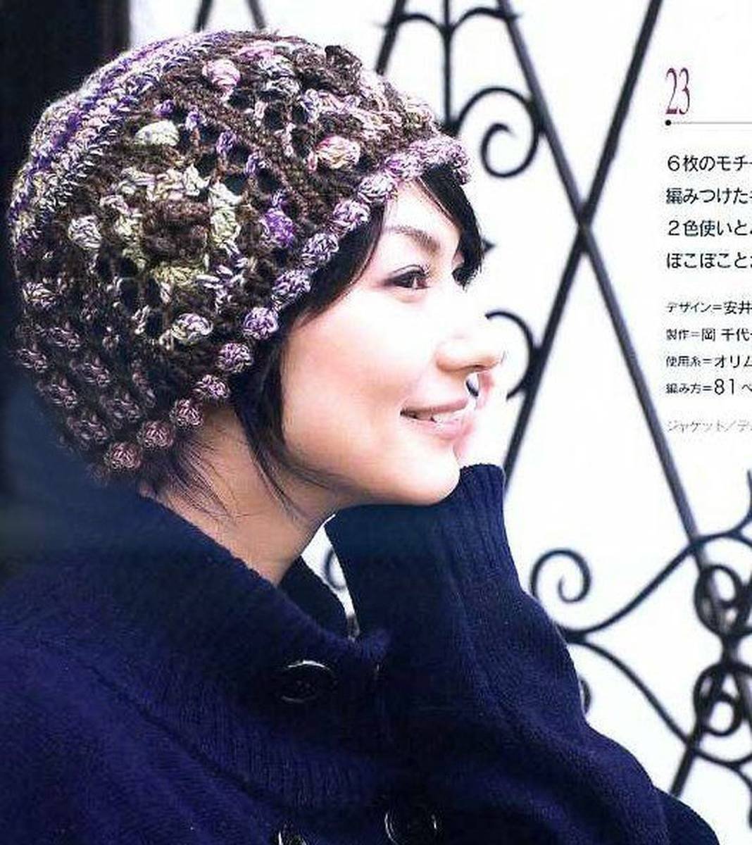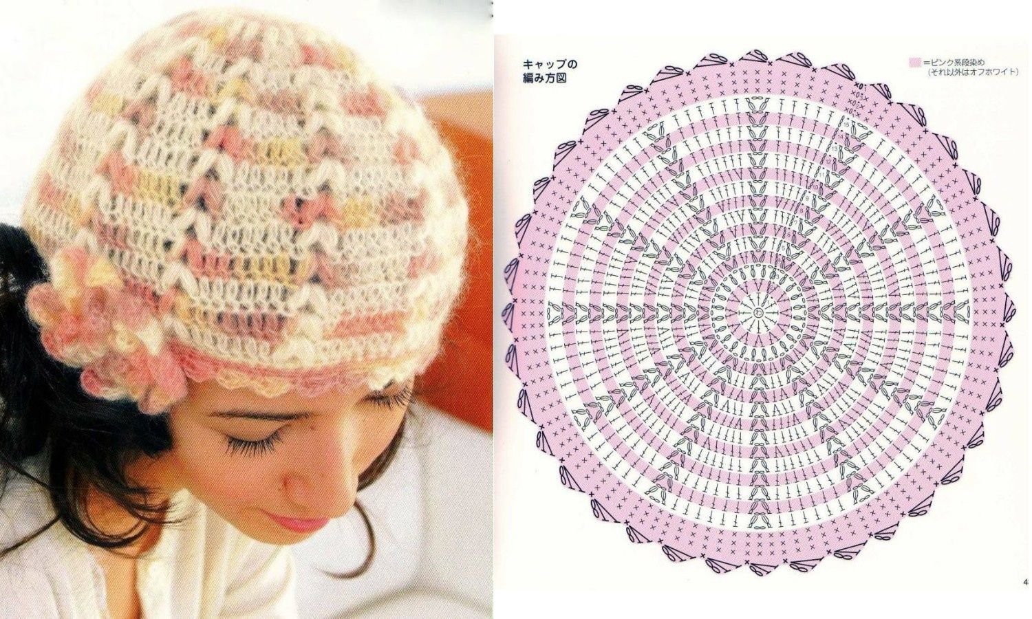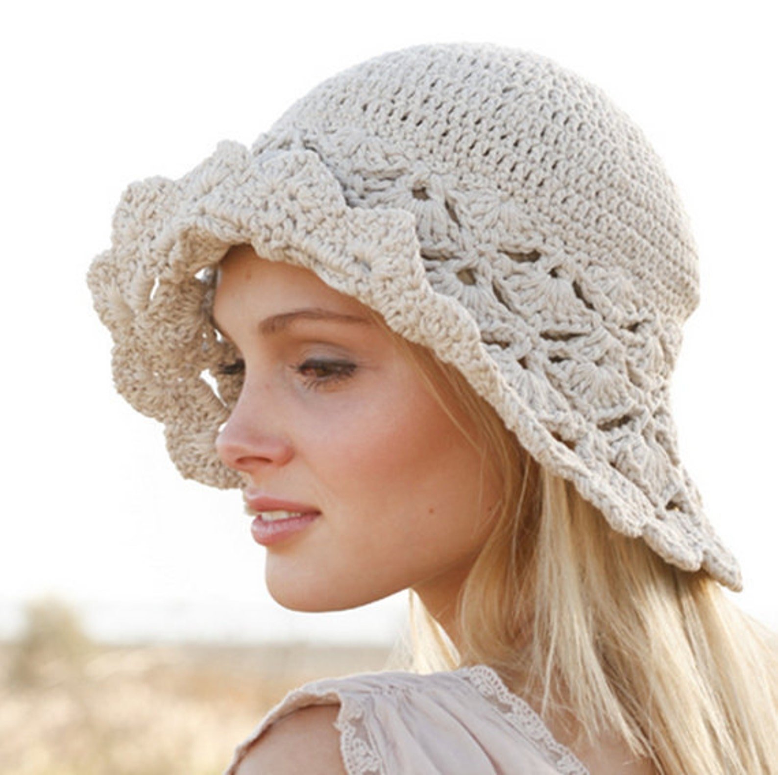 Женская шапочка крючком с украшением сбоку в ретро стиле