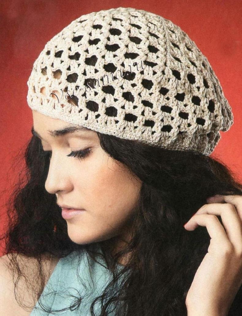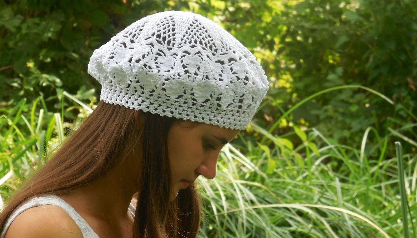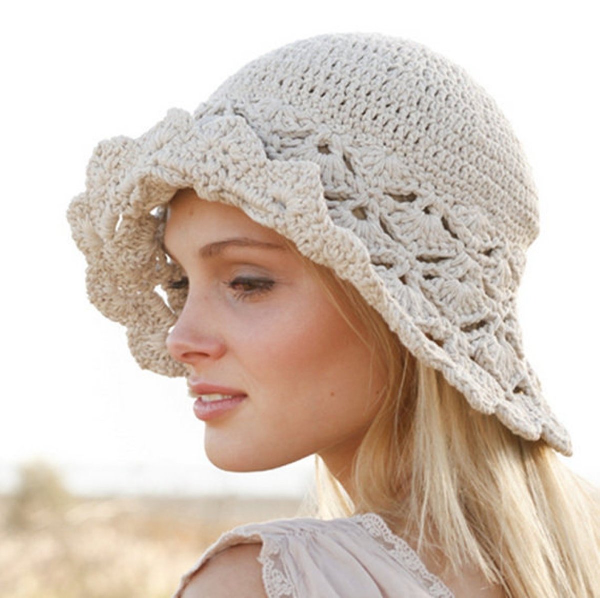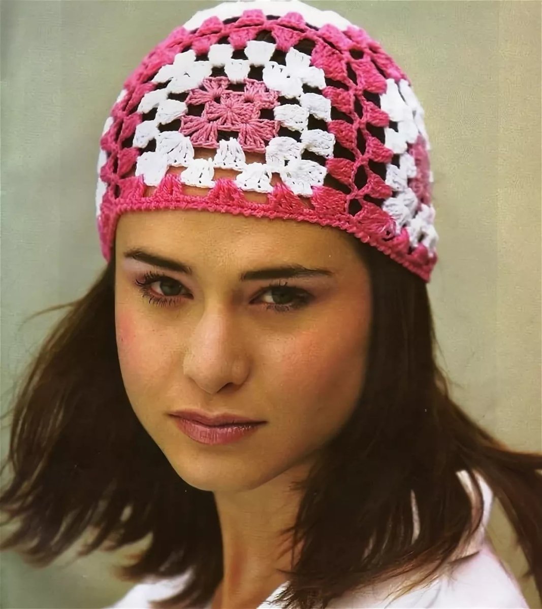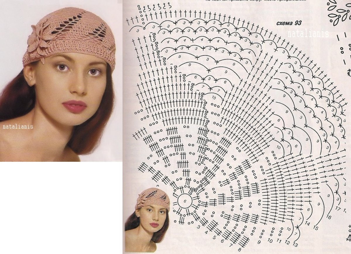 Женская шапочка крючком с украшением сбоку в ретро стиле