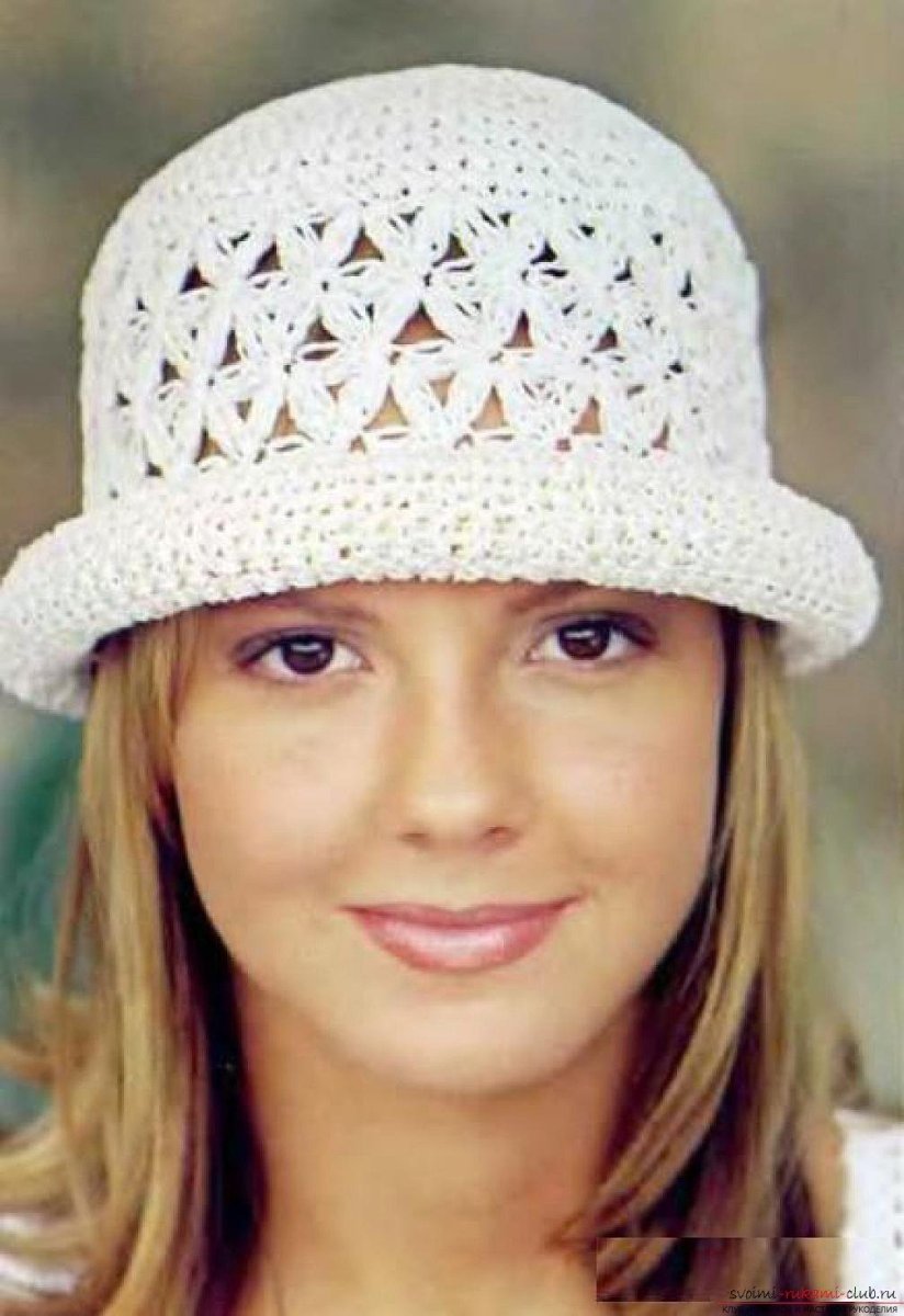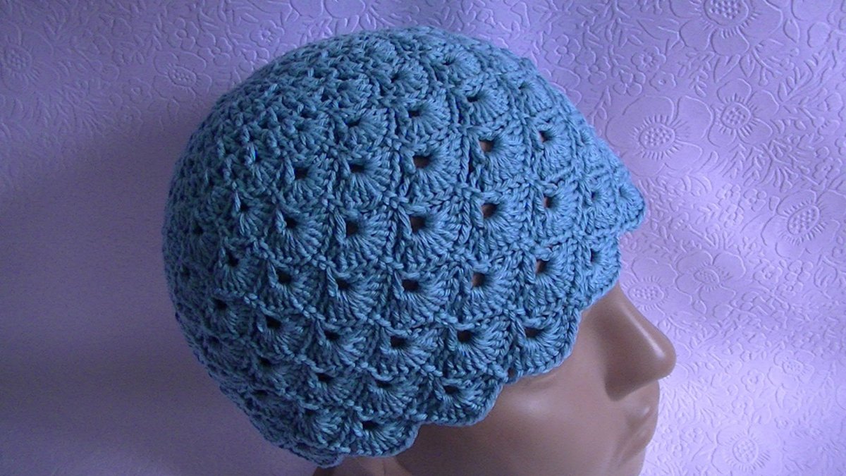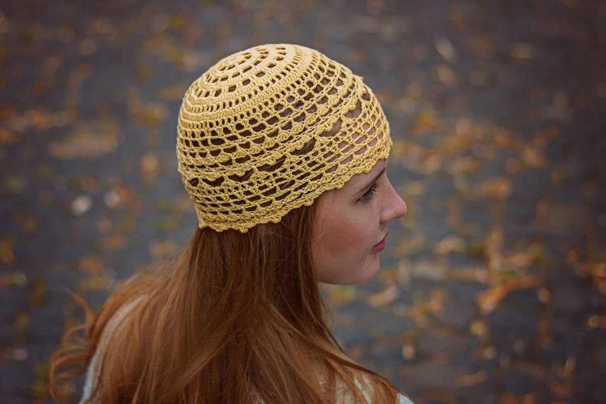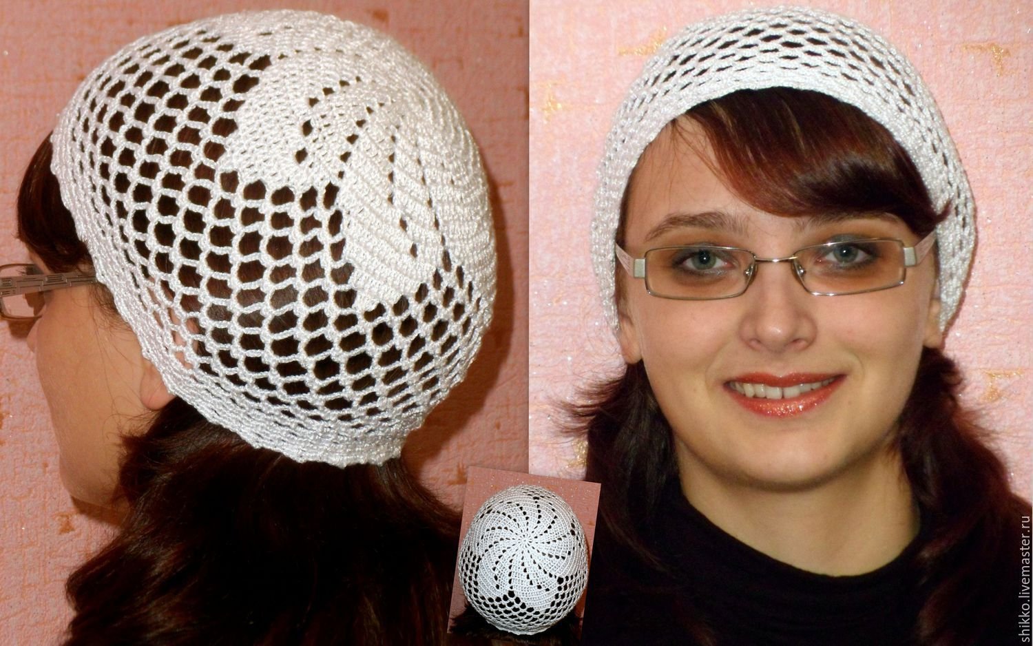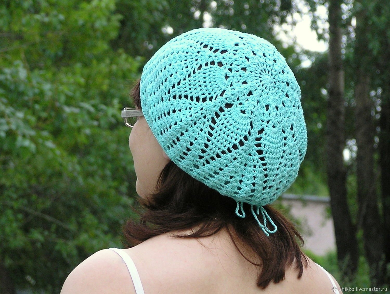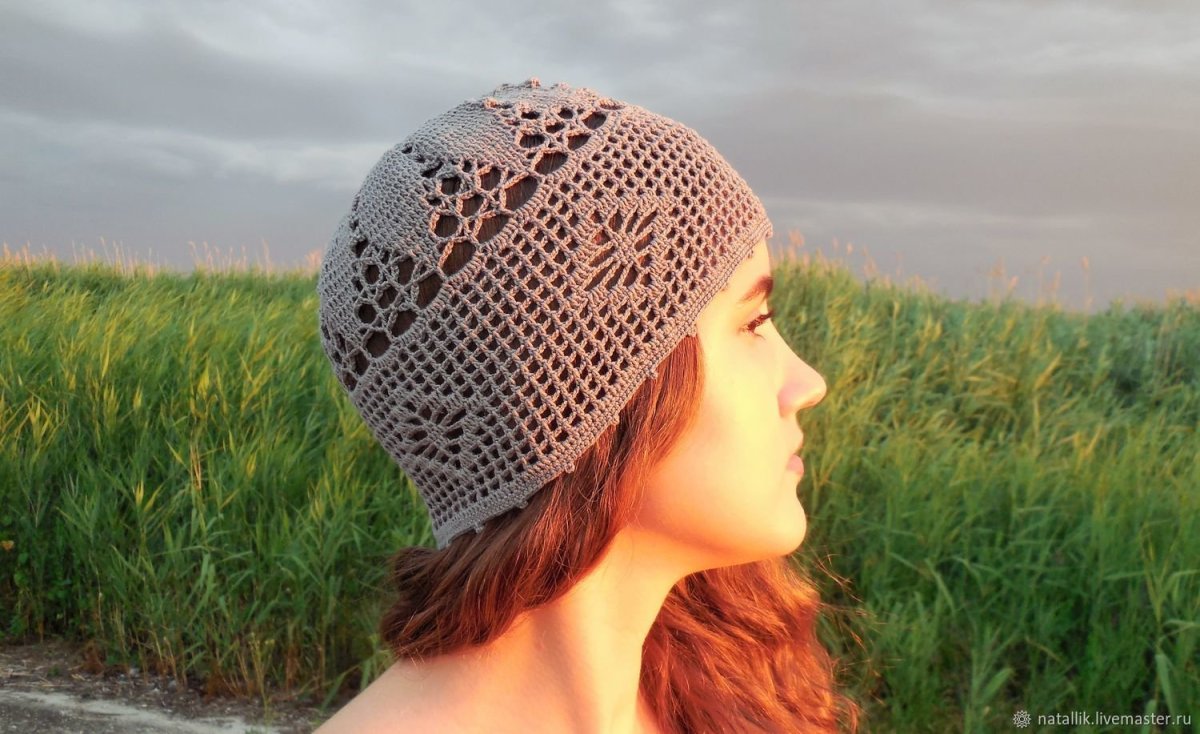 Женская шапочка крючком с украшением сбоку в ретро стиле