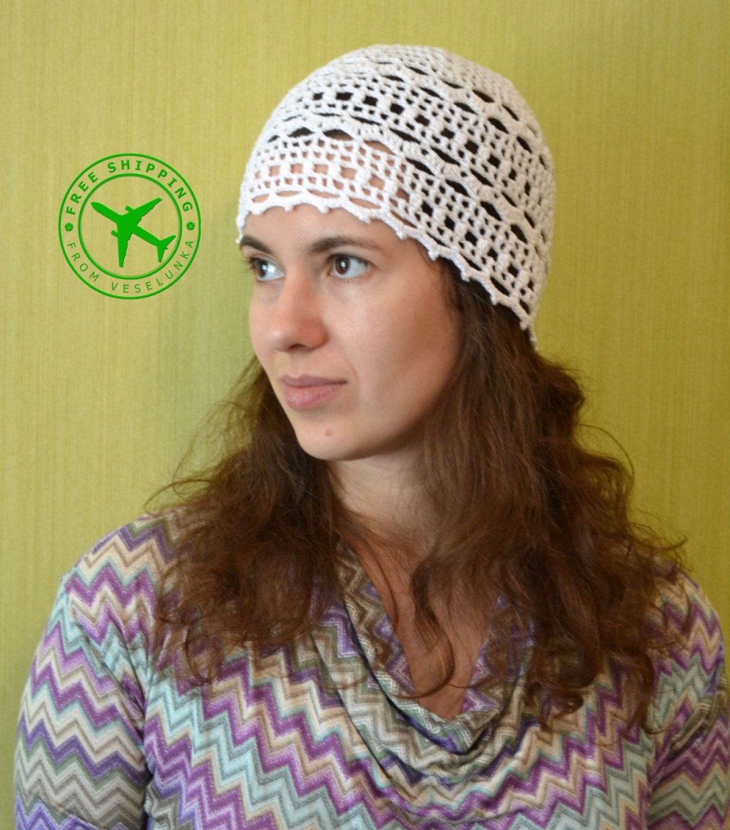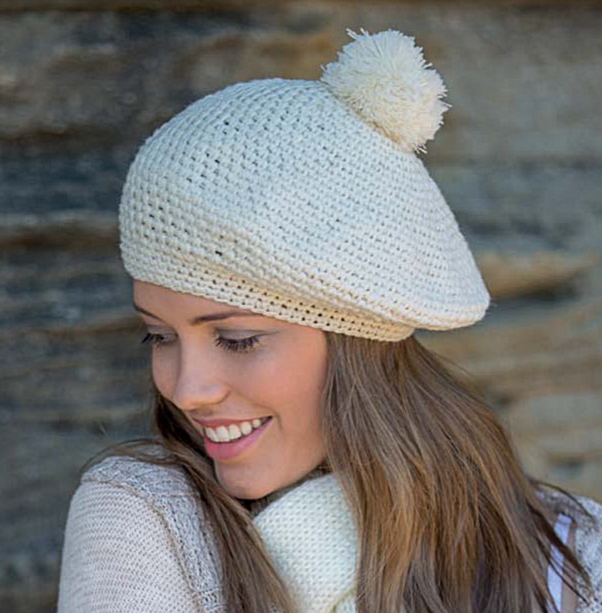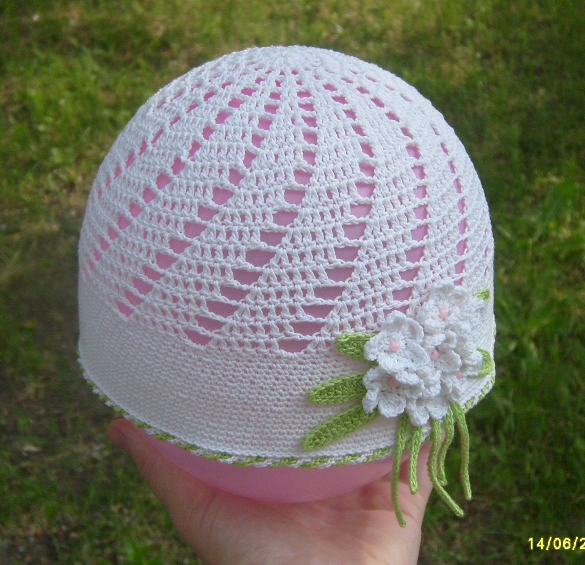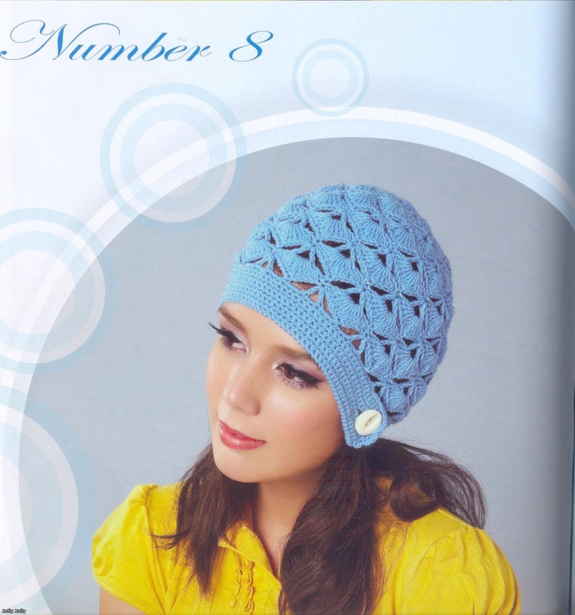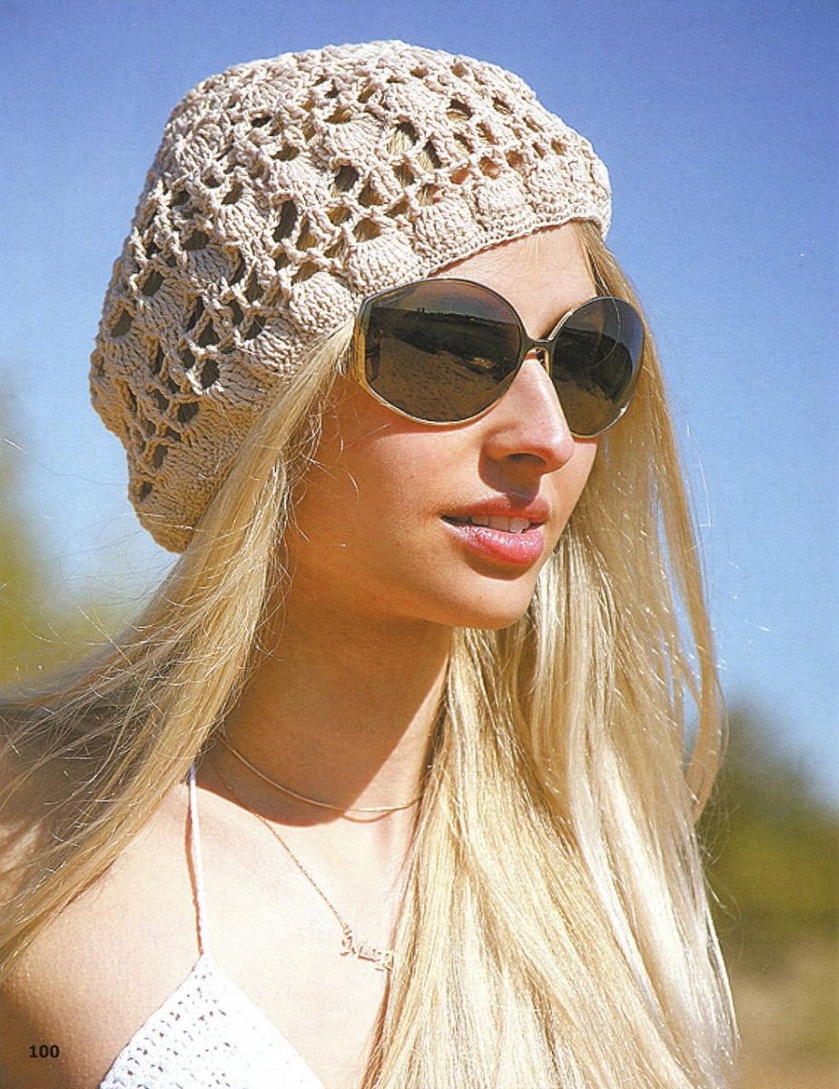 Женская шапочка крючком с украшением сбоку в ретро стиле