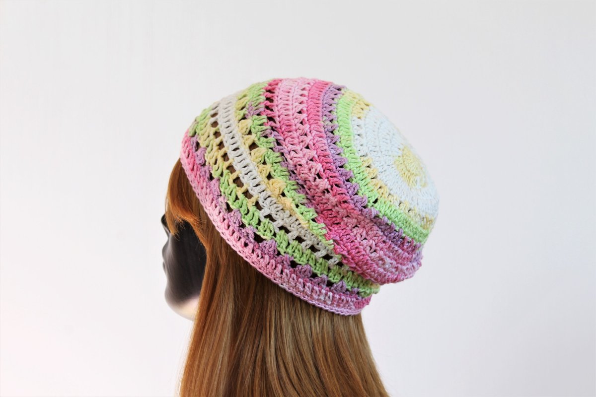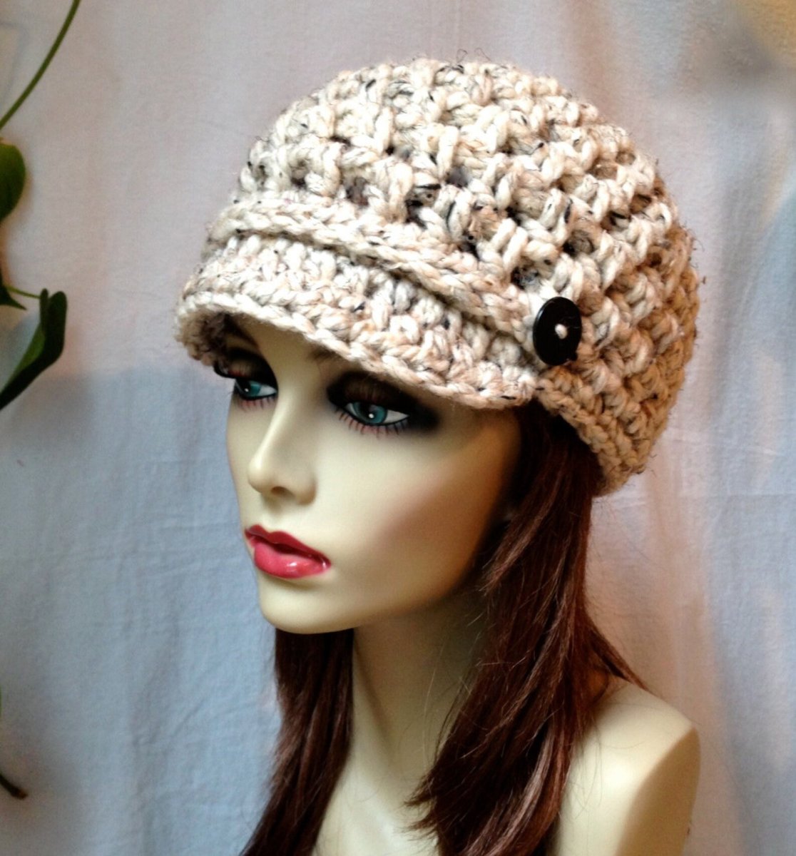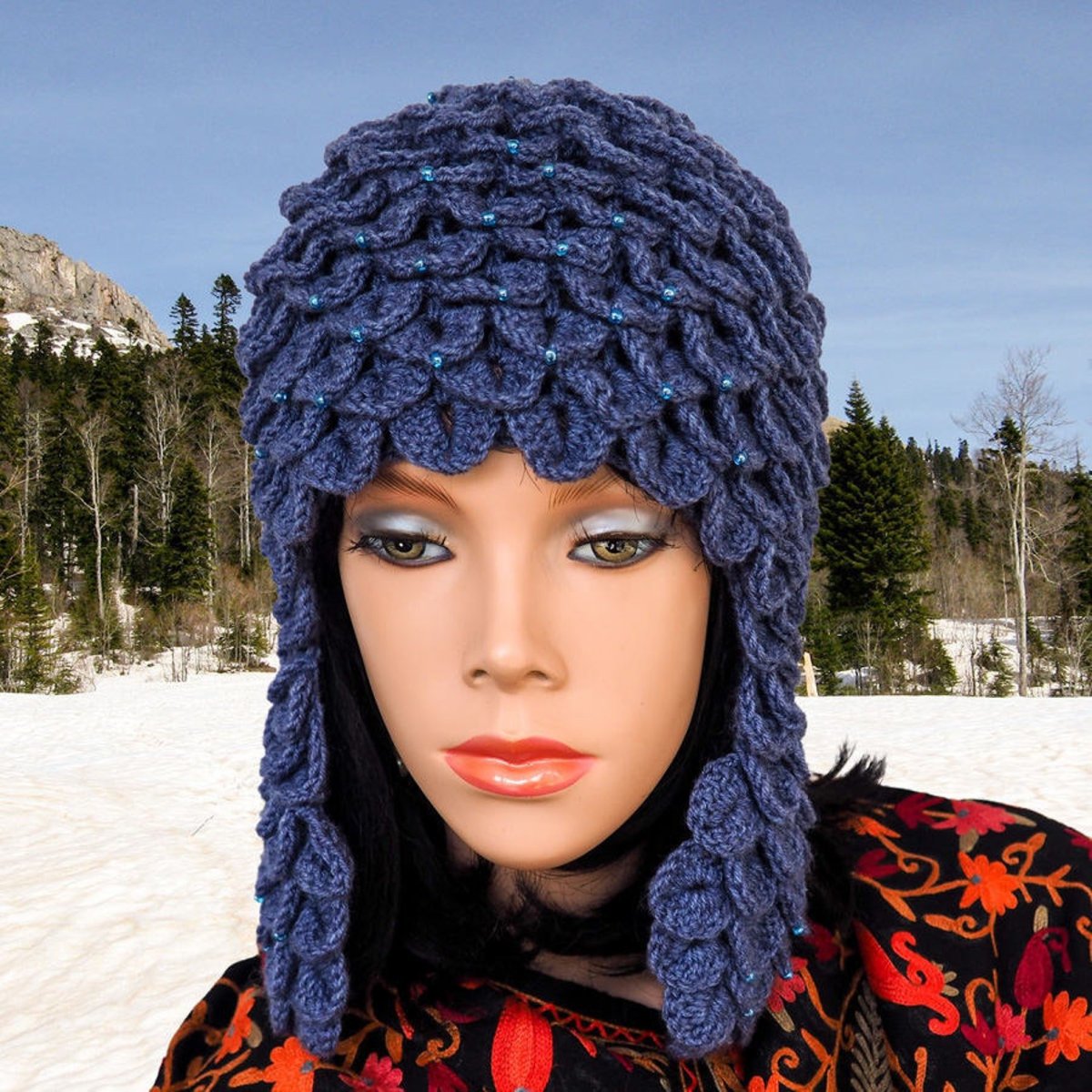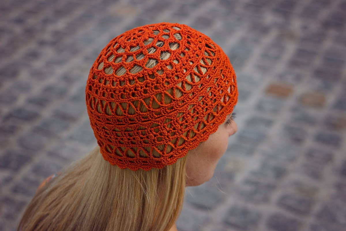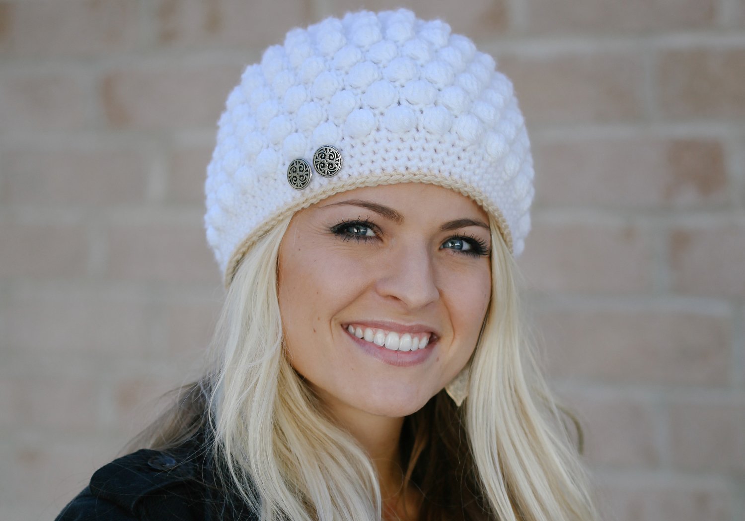 Женская шапочка крючком с украшением сбоку в ретро стиле