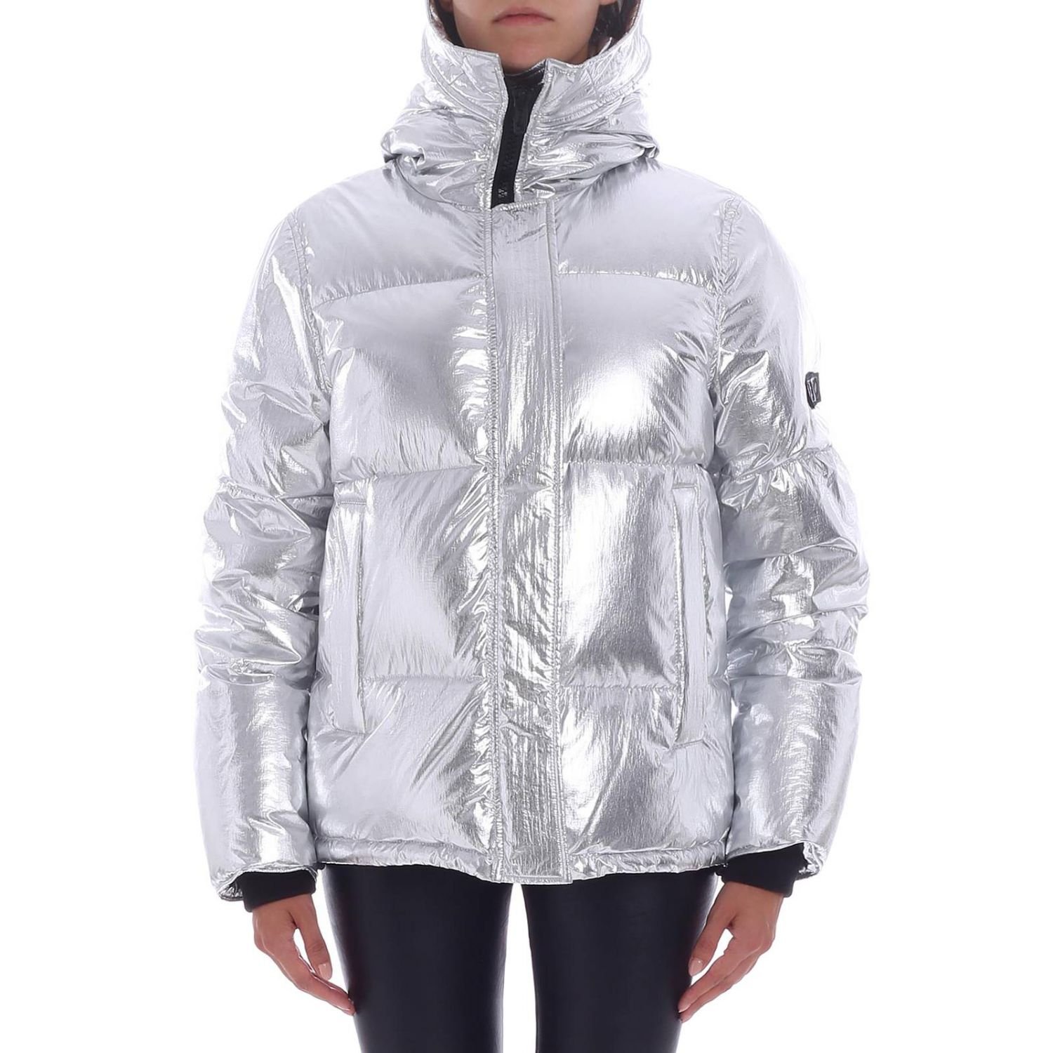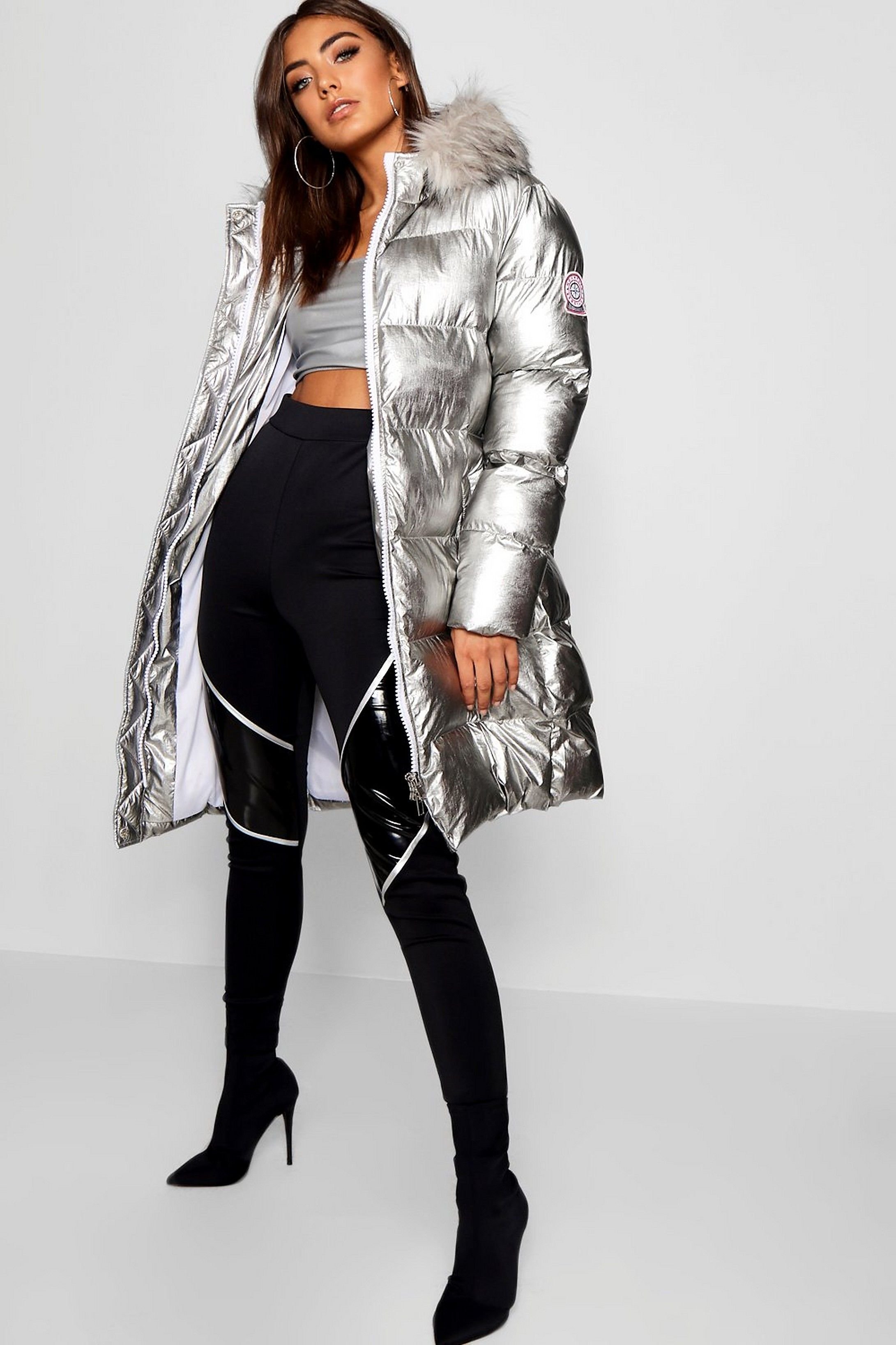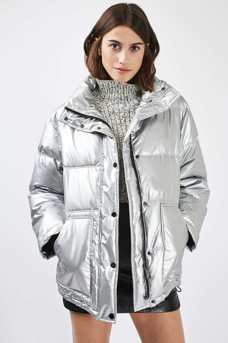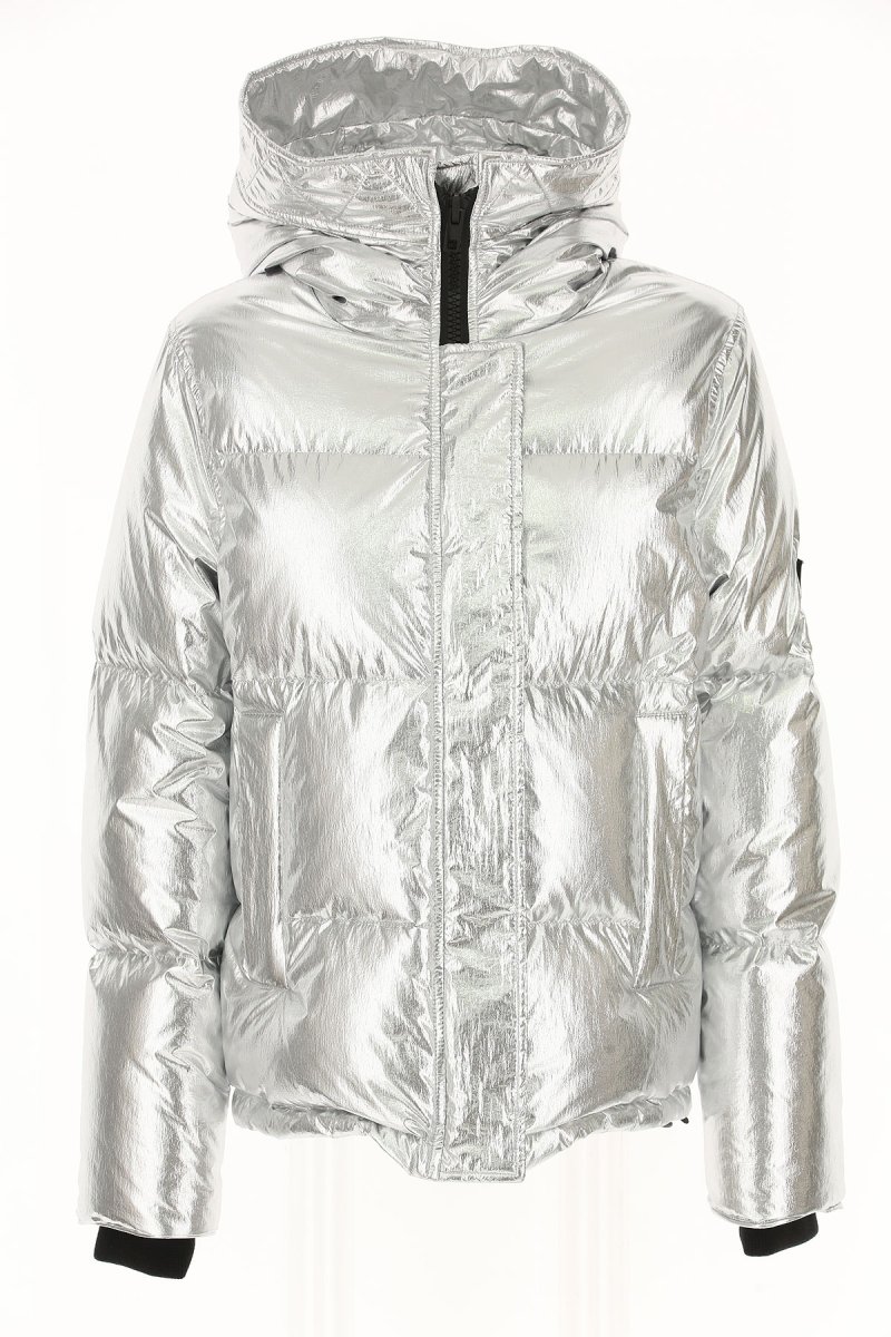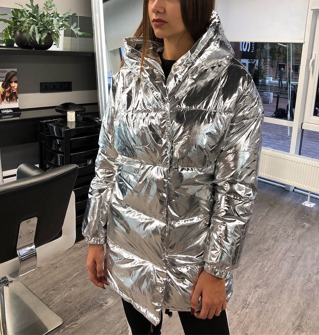 Серебристый пуховик женский