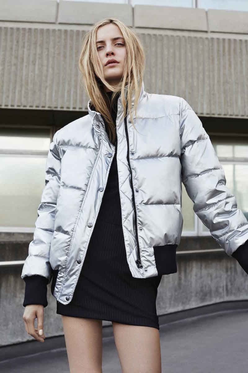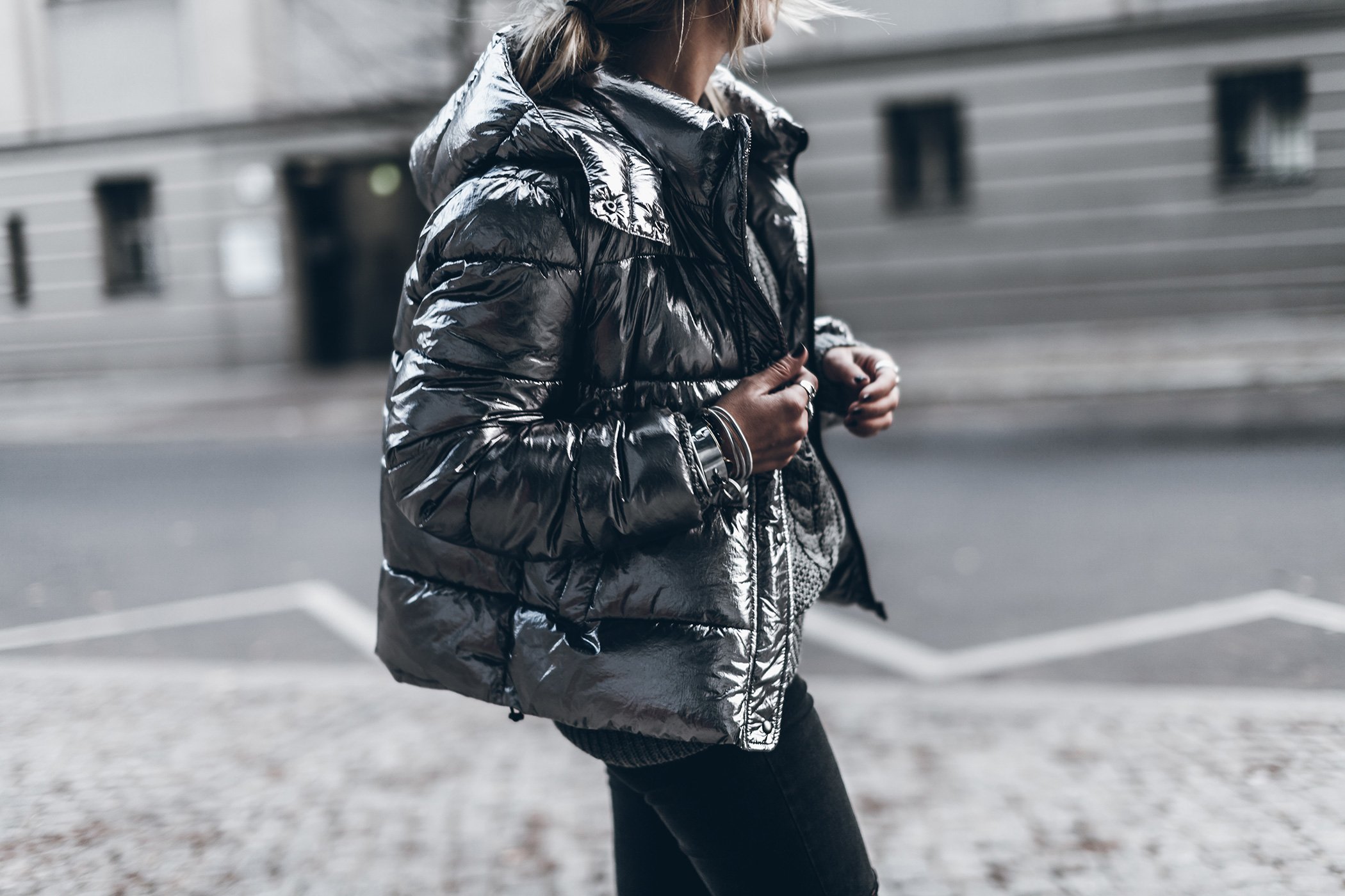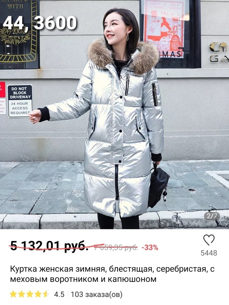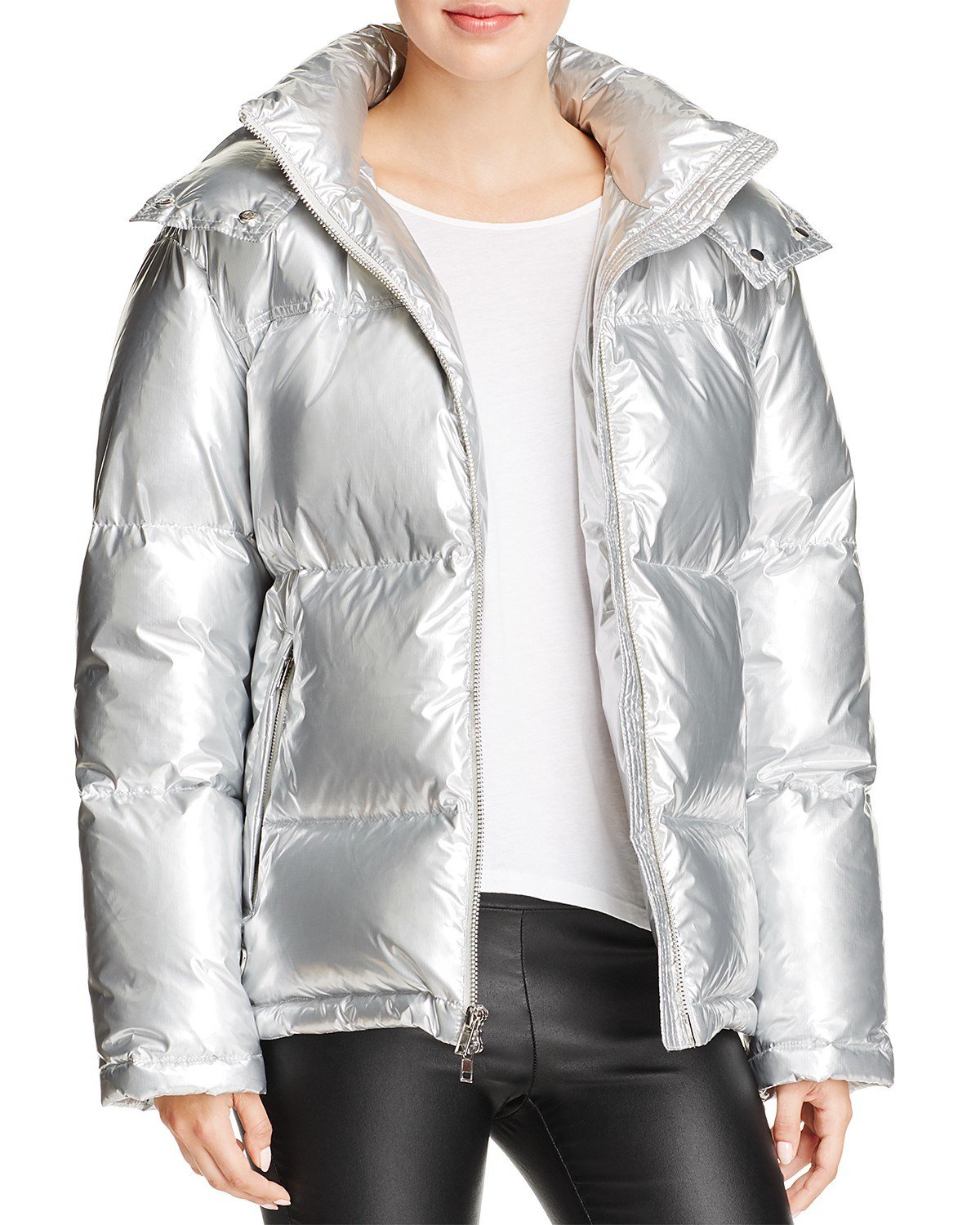 Серебристый пуховик женский