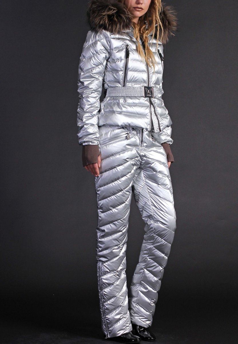 Пуховик серебристый металлик женский