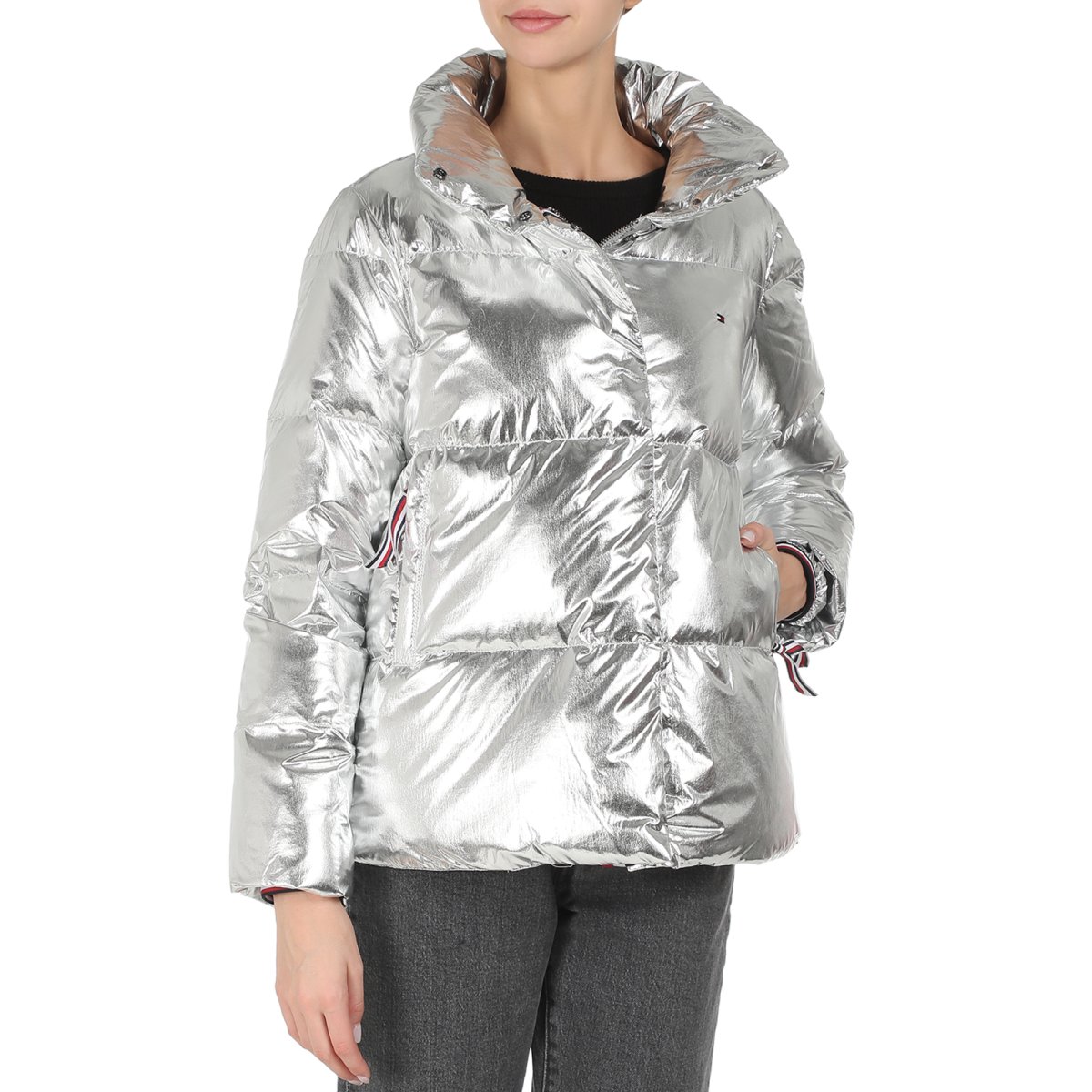 Серебряный пуховик Томми Хилфигер