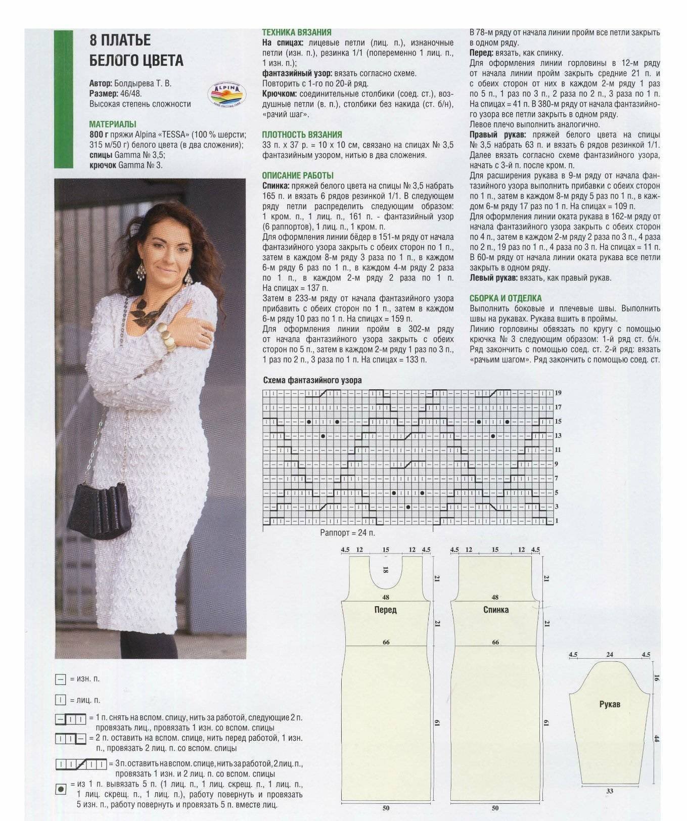 Вязаное платье для полных спицами