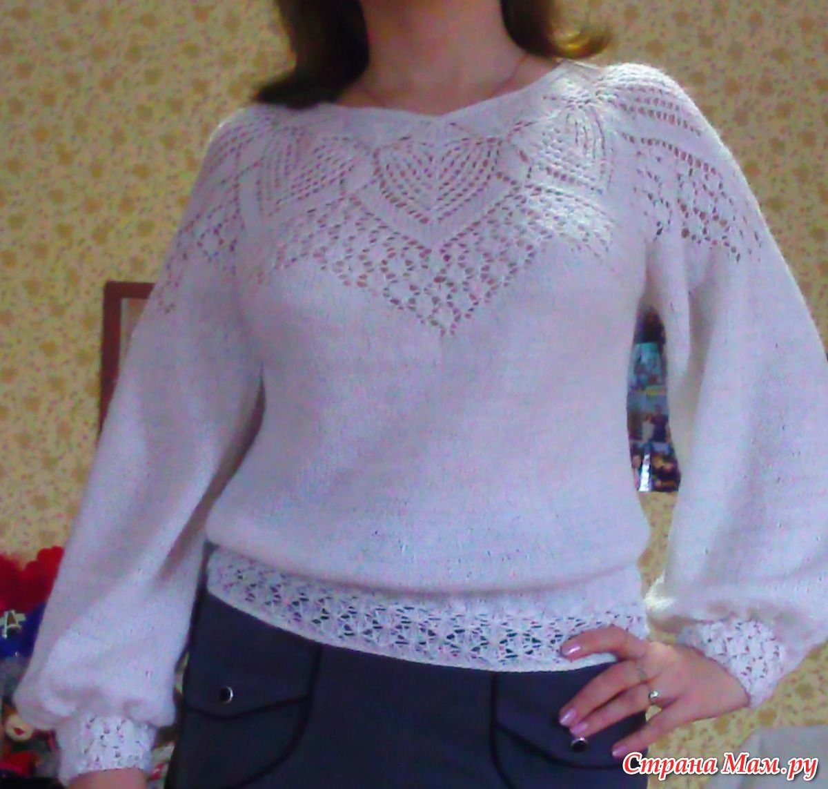 Свитер с ажурными рукавами