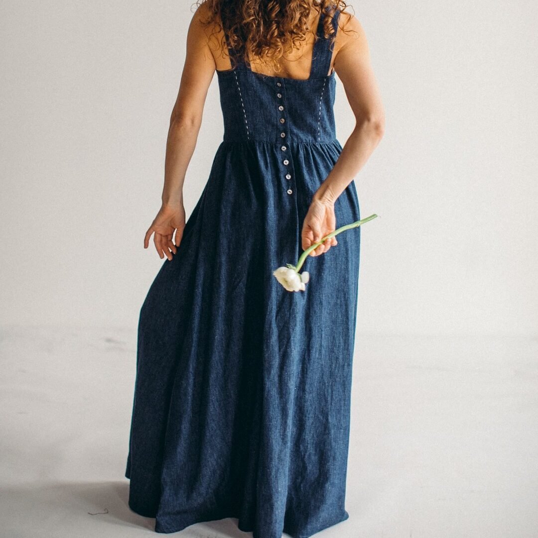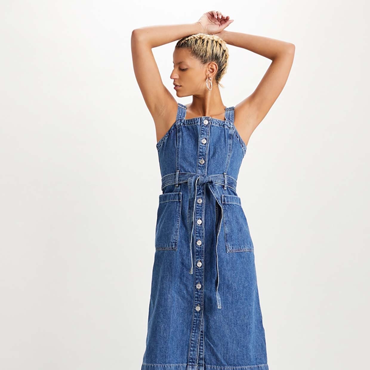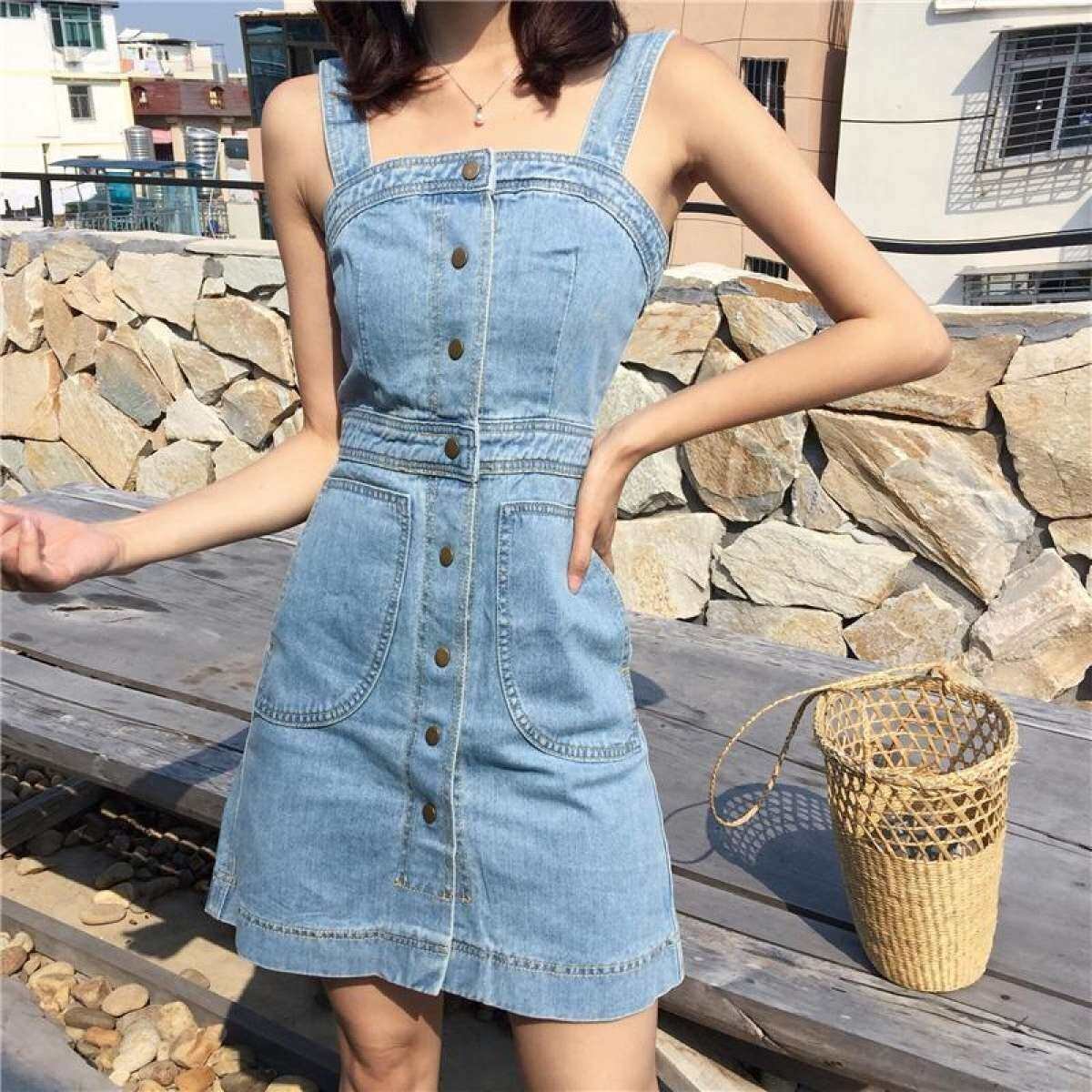 Floral Denim Suspender Dress women's Spring and autumn Minority Dress 2022 New French Suspender skirt