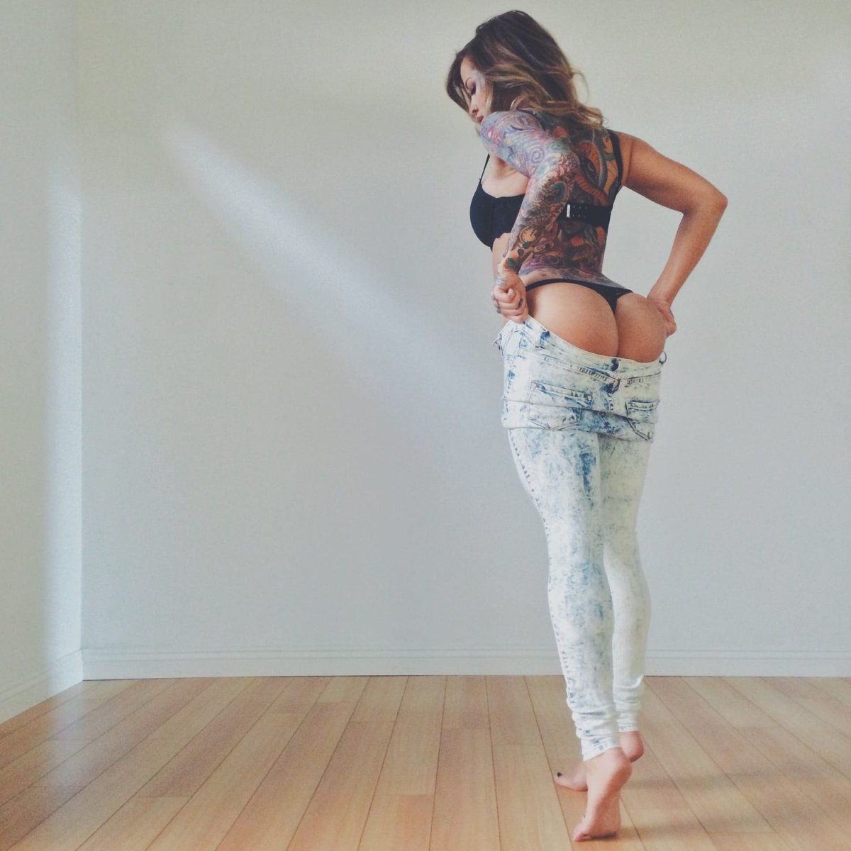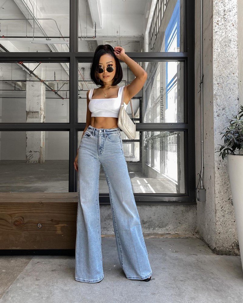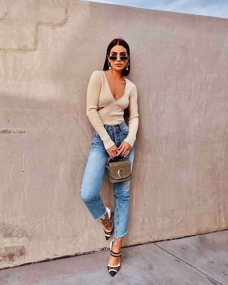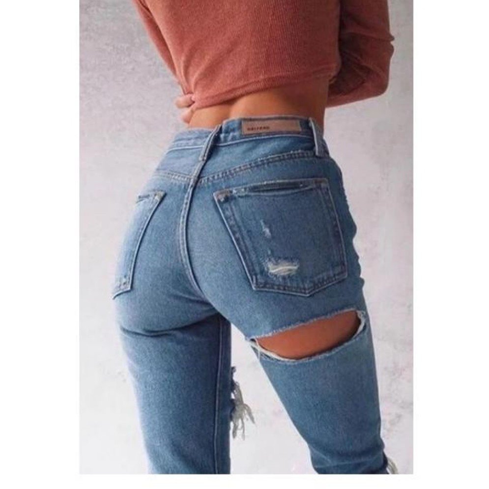 Красивые девушки в обтягивающих джинсах с высокой талией