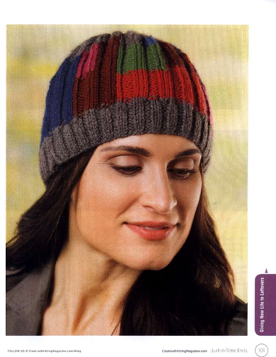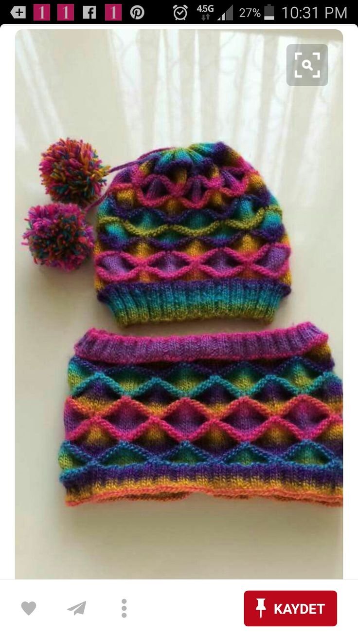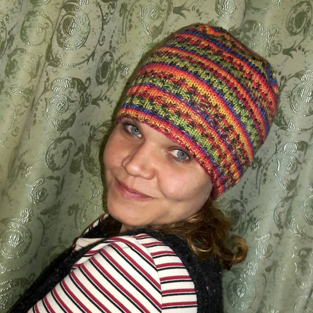 Шапка из остатков пряжи спицами