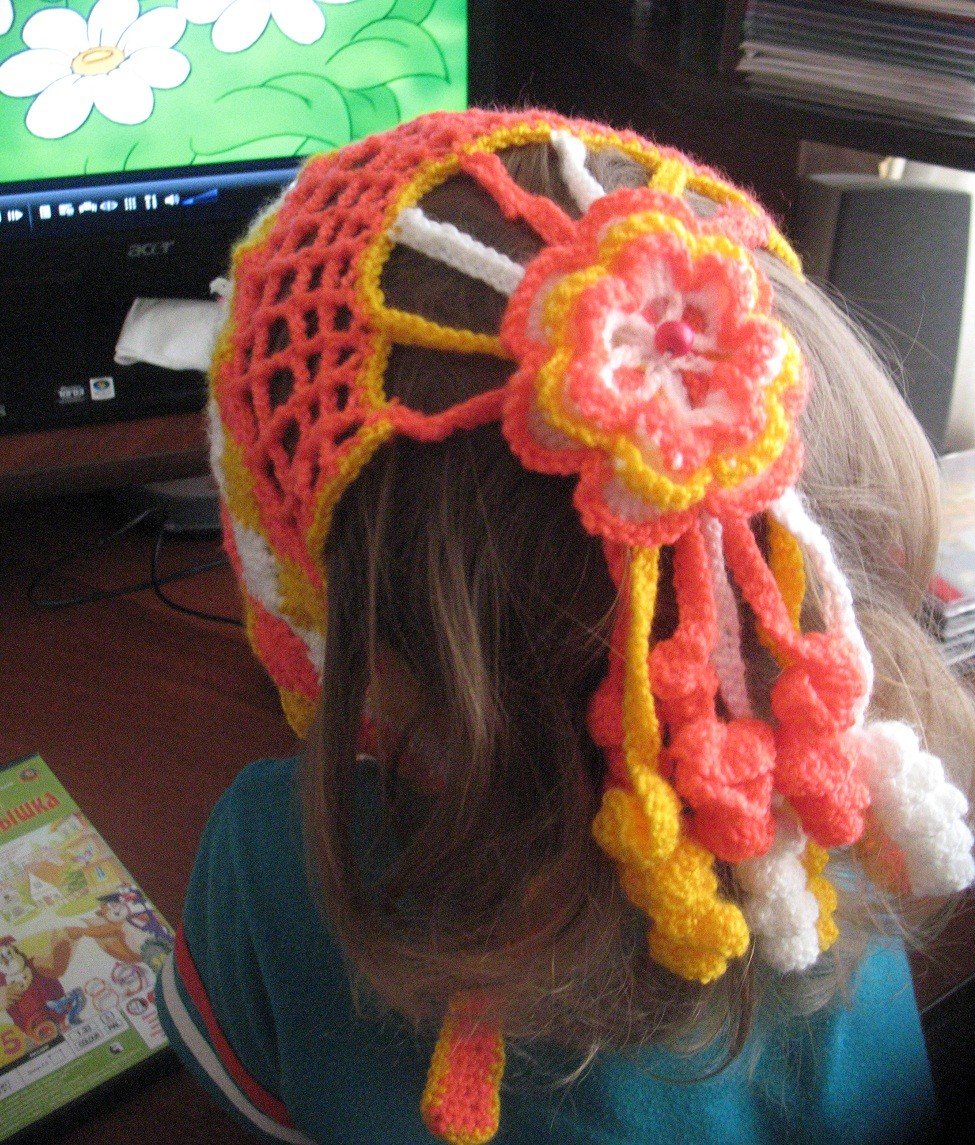 Косынка повязка крючком для девочки