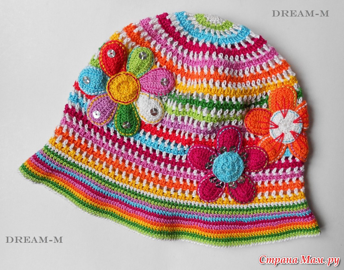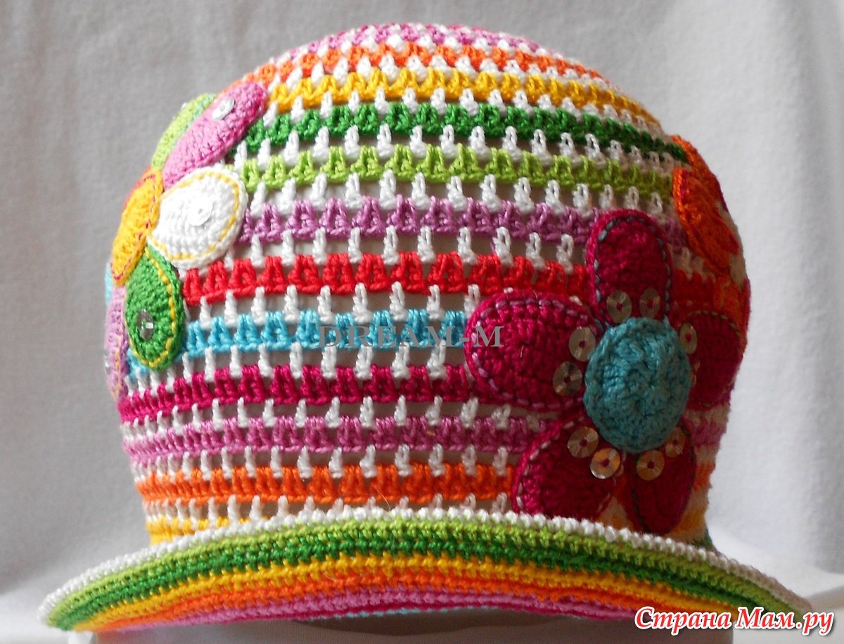 Вязаные панамки крючком цветные
