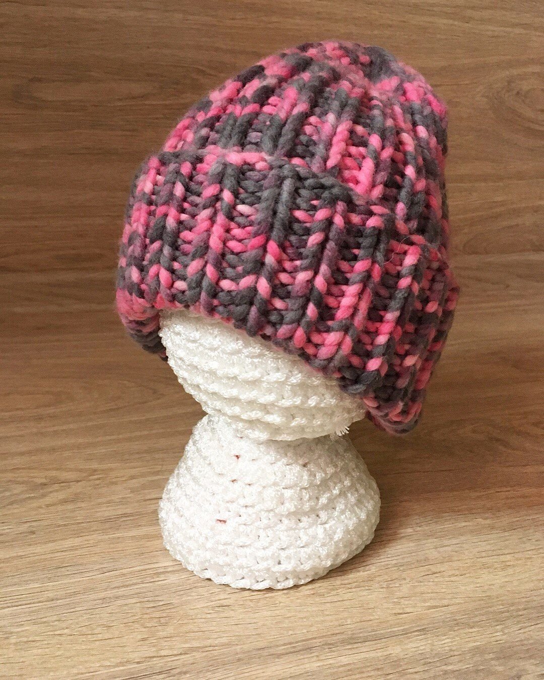 Шапка крючком из меланжевой пряжи
