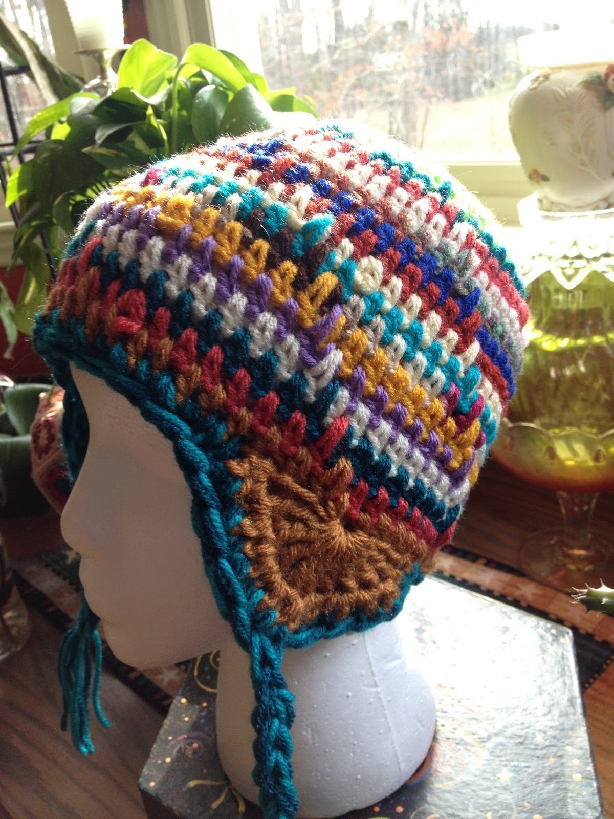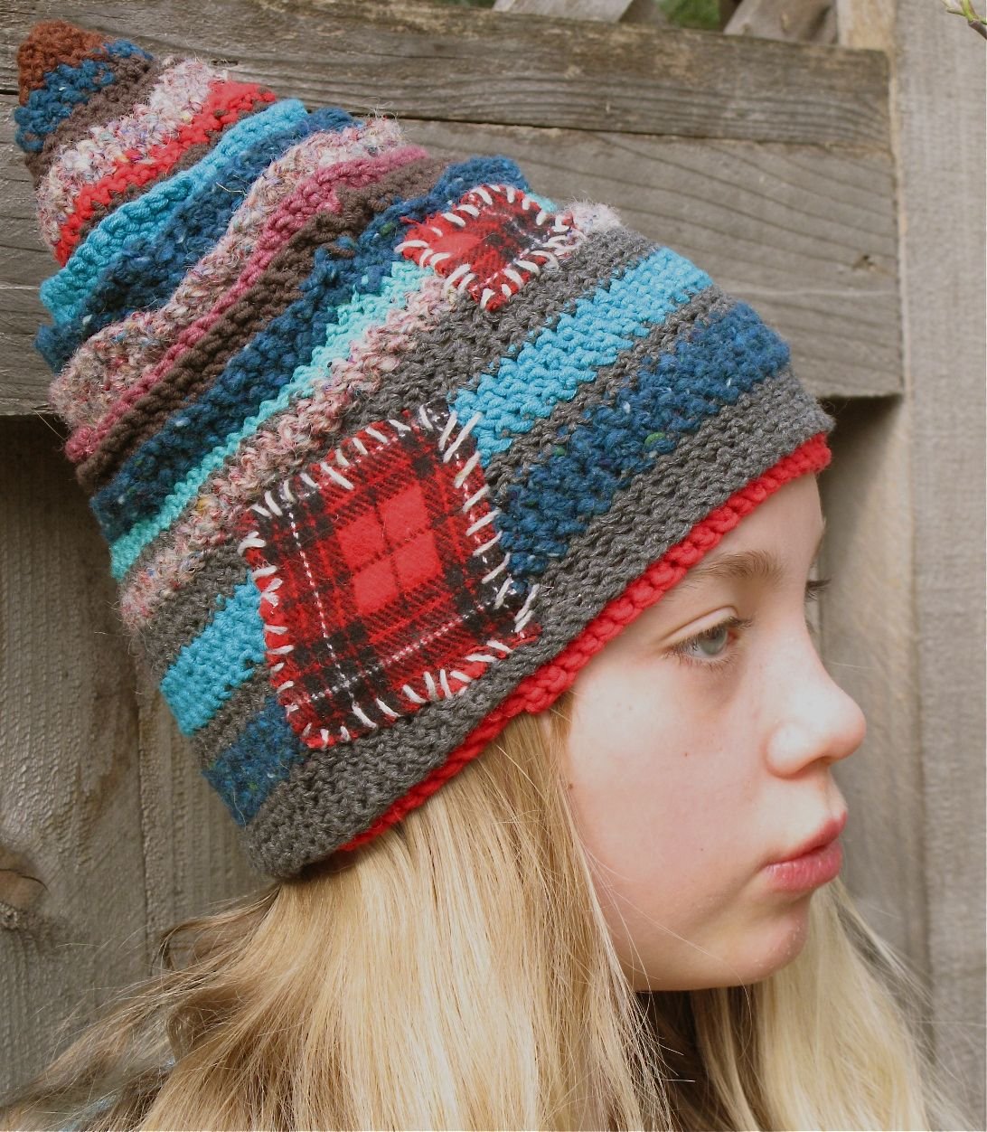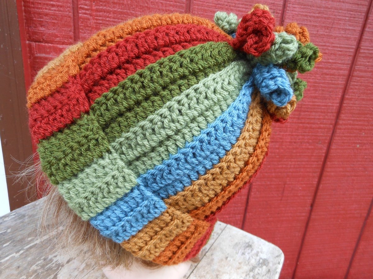 Шапка из остатков пряжи крючком